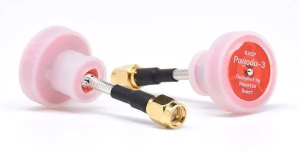Pagoda 2 5.8G FPV Antenna — это комплект из двух всенаправленных антенн типа «Пагода» с круговой правосторонней поляризацией (RHCP) и высокой эффективностью. Конструкция антенны основана на трёх ярусах печатных плат из меди толщиной 1 унция, что заменяет хрупкие проволочные элементы и обеспечивает превосходную повторяемость характеристик. Антенна обладает широкой полосой пропускания 500 МГц, высоким усилением 5 дБи и отличными параметрами согласования (КСВ <1.22). Идеально подходит для использования как на передающей, так и на приёмной стороне FPV-системы. Общие характеристики — Тип: Всенаправленная антенна типа «Pagoda» (Пагода) с круговой поляризацией — Модель: Pagoda 2 (5.8G, RHCP) — Назначение: Установка на видеопередатчики (VTX), FPV-очки или приёмные модули для получения стабильного сигнала с высокой помехозащищённостью от переотражений — Ключевое преимущество: Механически прочная конструкция на основе печатных плат, выдающиеся электрические параметры (КСВ <1.22, эллиптичность <1.3) и высокая эффективность (95%) в компактном форм-факторе — Поляризация: Правосторонняя круговая (Right Hand Circular Polarization — RHCP) — Разъём: SMA Male или RP-SMA Male (на выбор, см. варианты) — Количество в упаковке: 2 шт. Ключевые особенности — Прочная и точная конструкция на PCB: Три яруса печатных плат из толстой меди (1 oz) обеспечивают высокую механическую прочность, точность изготовления и стабильность электрических параметров от антенны к антенне, в отличие от вариативных ручных проволочных конструкций. — Превосходная круговая поляризация: Осевое соотношение (Axial Ratio) менее 1.3 дБ указывает на почти идеальную круговую поляризацию, что максимально эффективно борется с многолучевыми замираниями (мультипэтом) и улучшает стабильность картинки. — Высокое усиление и эффективность: Коэффициент усиления 5 дБи в сочетании с радиационной эффективностью 95% обеспечивает значительное увеличение эффективной излучаемой мощности (EIRP) и чувствительности приёмника по сравнению со стандартными диполями или антеннами «лягушачья лапка». — Широкая полоса пропускания: Рабочий диапазон 5.55–6.05 ГГц покрывает все возможные аналоговые каналы 5.8 ГГц (включая Raceband) и совместим с большинством цифровых HD-систем. — Комплектация для защиты: В комплект входит термоусадочная трубка из прочного полиолефина для защиты печатных плат антенны от физических повреждений и коротких замыканий. Технические характеристики — Диапазон частот (полоса пропускания): 5.55 – 6.05 ГГц — Центральная частота: ~5.8 ГГц — Коэффициент усиления (Gain): 5 дБи — Коэффициент стоячей волны (VSWR): < 1.22 (на центральной частоте) — Осевое соотношение (Axial Ratio): < 1.3 дБ — Возвратные потери (S11): < -20 дБ — Радиационная эффективность (Radiation Efficiency): 95% — Максимальная входная мощность: 50 Вт — Волновое сопротивление: 50 Ом — Диаграмма направленности: Всенаправленная (Omnidirectional) — Габариты (Д x Диаметр макс. x Диаметр мин.): 78±3 мм x 22.4±1 мм x 11.8±1 мм — Вес одной антенны: 9 г — Цвет: Красный (Red) Область применения — Установка на наземные станции, FPV-очки и приёмные модули с разъёмом SMA/RP-SMA для максимального качества приёма. — Использование в качестве передающей антенны на VTX дронов среднего и крупного размера, где важны дальность и помехоустойчивость. — Гоночные и фристайл FPV-системы, где критична стабильность видеосигнала при выполнении манёвров вблизи препятствий. — Любительски