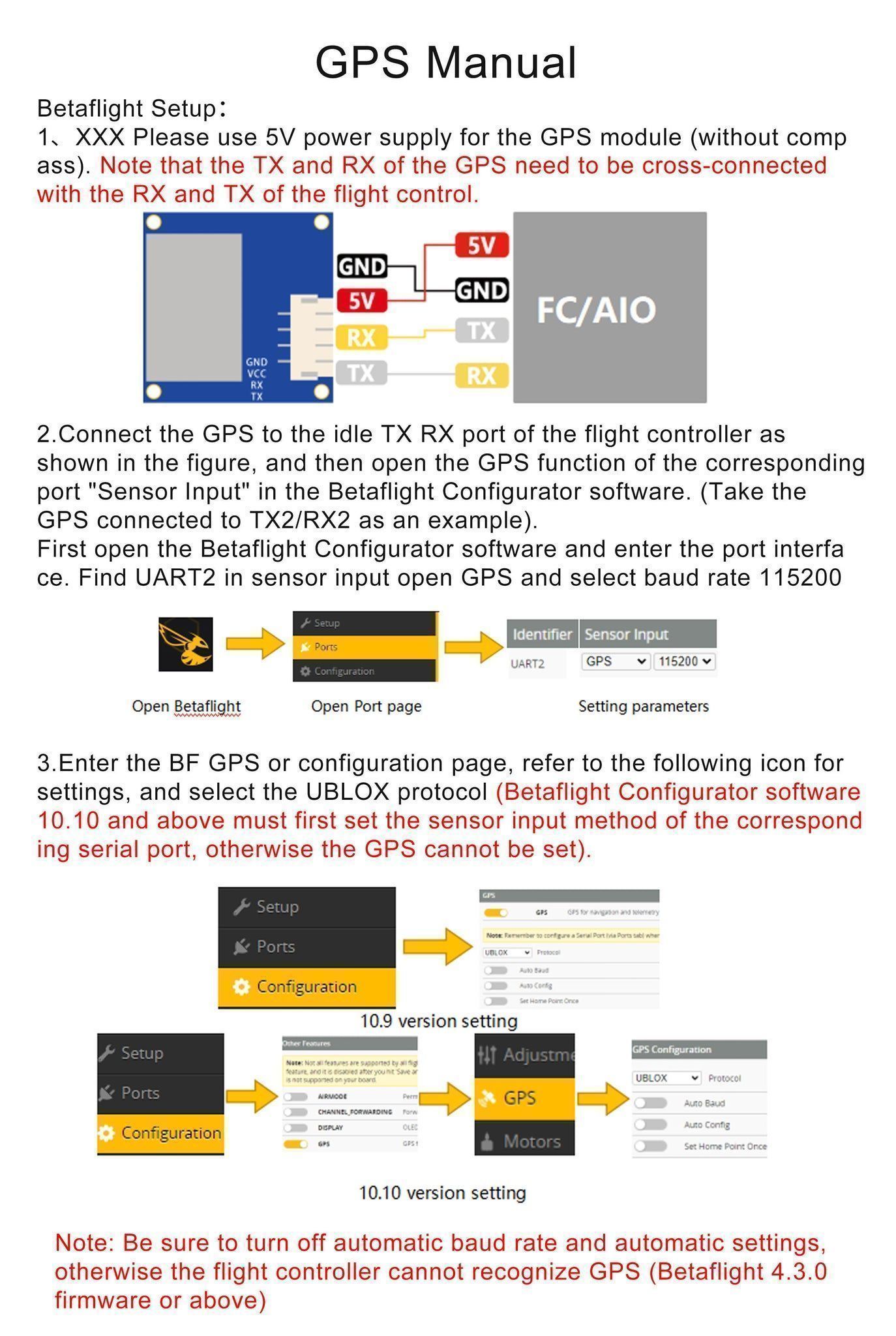 — Протокол вывода: UBX (U-Blox), совместимый с Betaflight / INAV