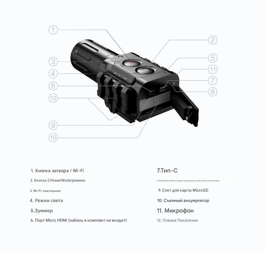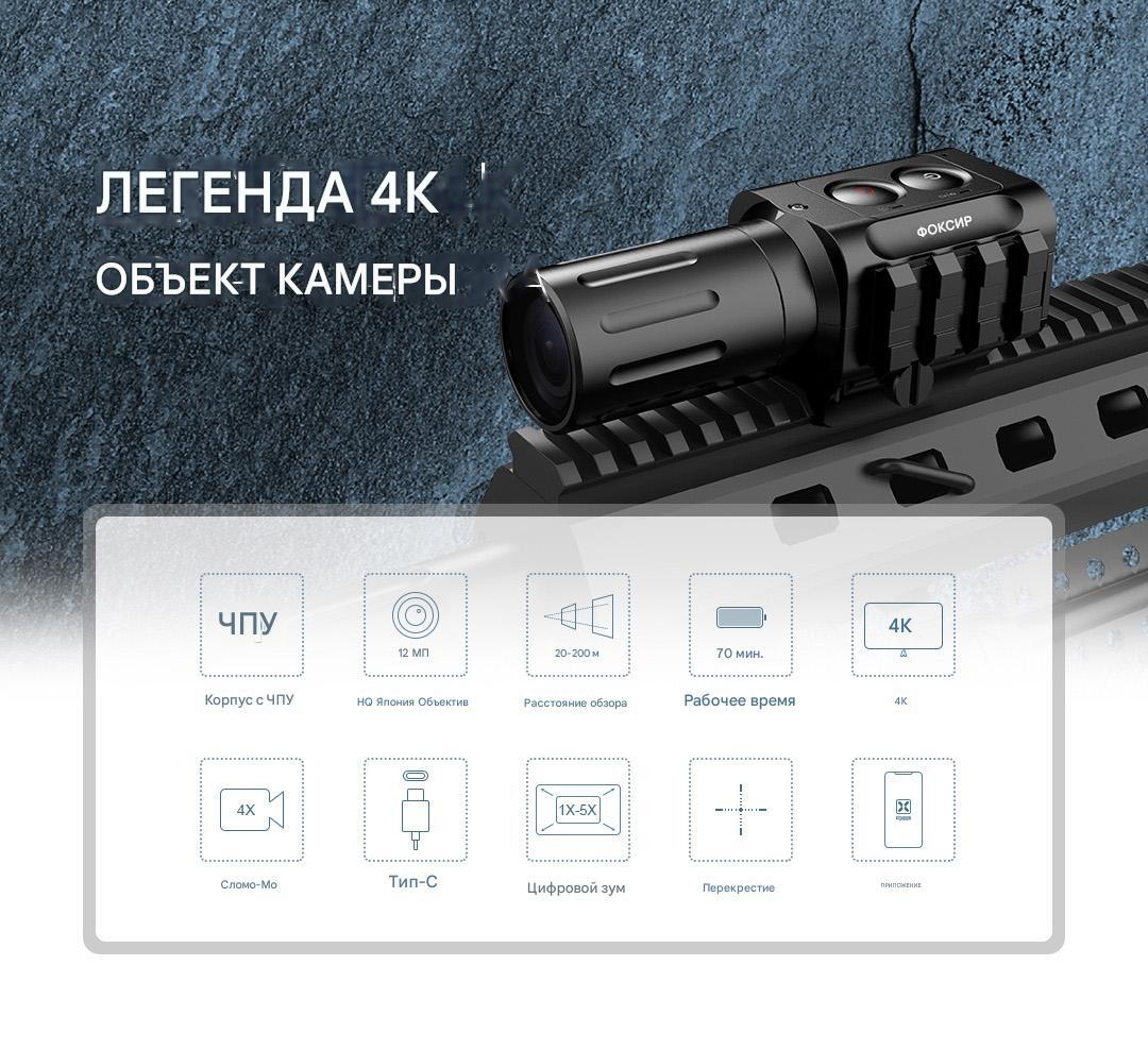 Профессиональная экшн-камера в цельнометаллическом фрезерованном (CNC) корпусе, предназначенная для крепления на планку Пикатинни страйкбольного или пневматического оружия. Модель оснащена процессором Ambarella A16, сенсором Sony IMX117 и сменным объективом с фокусным расстоянием 25 мм, обеспечивающим широкий угол обзора для съёмки на дистанциях 20–200 метров. Камера поддерживает запись видео в разрешении до 4K и замедленном режиме 120 FPS, имеет электронную стабилизацию (EIS), цифровой прицел (Crosshair) и управление через Wi-Fi с мобильного приложения. Общие характеристики — Тип устройства: Экшн-камера для крепления на оружие (Scope Camera) — Модель: Foxeer Legend 4K — Процессор: Ambarella A16 — Матрица: Sony IMX117, 1/2.3 дюйма, 12 Мп — Объектив: Сменный, 25 мм, с многослойным просветлением (AR+AF) — Корпус: Цельнометаллический, фрезерованный из алюминиевого сплава (CNC) — Крепление: Планка Пикатинни (снизу и сбоку, 21 мм) — Эффективная дальность съёмки: 20–200 метров — Вес: 117 г (без аккумулятора) — Габаритные размеры (Д x Ш x В): 100 x 47 x 34 мм Ключевые особенности — Профессиональная элементная база: Сочетание процессора Ambarella A16 и сенсора Sony IMX117 обеспечивает высокое качество изображения, отличную цветопередачу и широкий динамический диапазон. — Широкоугольный объектив 25 мм: Обеспечивает максимальный угол обзора, что удобно для съёмки в ближнем бою, на динамичных трассах и для захвата большей области пространства вокруг прицельной марки. — Замедленная съёмка (120 FPS): Возможность записи видео с частотой 120 кадров в секунду в разрешении 1080p позволяет создавать эффектные slow-motion ролики. — Электронная стабилизация (EIS): Компенсирует вибрации и дрожание от отдачи и движения, делая видео более плавным. — Цифровой прицел (Crosshair): Накладываемая сетка с регулируемым положением, которая может использоваться для пристрелки или как вспомогательное средство прицеливания. — Прочный цельнометаллический корпус: Фрезерованный алюминиевый корпус защищает электронику от ударов и вибраций при интенсивной эксплуатации. Технические характеристики — Видеоразрешения: 4K (3840x2160) @ 30fps, 2.7K (2560x1440) @ 60fps, 1080p @ 120/60fps — Фото: До 16 Мп — Цифровой зум: 1x – 5x — Стабилизация: EIS (On/Off) — Функции: Циклическая запись, штамп даты/времени, Dual Files — Аудио: Встроенный микрофон, настройка громкости записи — Питание: Съёмный аккумулятор (до 70 мин работы), зарядка через USB Type-C (5 В) — Интерфейсы: USB Type-C, Micro HDMI (кабель не входит), слот для карт microSD (до 128 ГБ, класс U3) — Беспроводная связь: Wi-Fi для управления через приложение Foxeer AS (iOS/Android) — Крепление: Picatinny rail (21 мм) снизу и сбоку Область применения — Запись игровых сессий в страйкболе и пневматике с точки зрения стрелка. — Тренировки и анализ стрельбы, отработка навыков прицеливания. — Съёмка охоты и полевых испытаний оружия. — В качестве носимой экшн-камеры для экстремальных видов спорта благодаря прочному корпусу и креплению. Комплектация — Камера Foxeer Legend 4K с объективом 25 мм — 1 шт. — Съёмный аккумулятор — 1 шт. — Кабель USB Type-C — 1 шт. Варианты исполнения и коммерческое предложение — Данная модель камеры доступна с другими типами объективов. Чтобы получить коммерческое предложение (КП) на нужную версию, уточнить наличие оптовых партий и стоимость, нажмите кнопку «Запросить КП». Менеджер сформирует для вас индивидуальное предложение с учетом требуемой конфигурации и сроков поставки: — Модифик