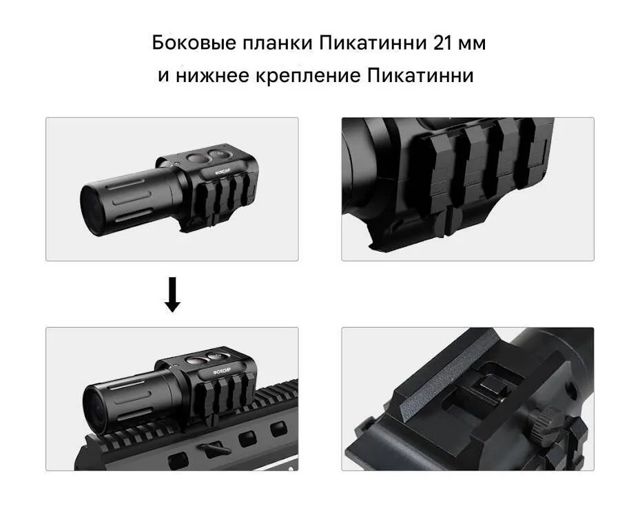 Профессиональная экшн-камера в цельнометаллическом фрезерованном (CNC) корпусе, предназначенная для крепления на планку Пикатинни оружия. Модель оснащена процессором Ambarella A16, сенсором Sony IMX117 и сменным объективом с фокусным расстоянием 50 мм, обеспечивающим значительное приближение для съёмки удалённых целей на дистанциях 20–200 метров. Камера поддерживает запись видео в разрешении до 4K и замедленном режиме 120 FPS, имеет электронную стабилизацию (EIS), цифровой прицел (Crosshair) и управление через Wi-Fi с мобильного приложения. Общие характеристики — Тип устройства: Экшн-камера для крепления на оружие (Scope Camera) — Модель: Foxeer Legend 4K — Процессор: Ambarella A16 — Матрица: Sony IMX117, 1/2.3 дюйма, 12 Мп — Объектив: Сменный, 50 мм, с многослойным просветлением (AR+AF) — Корпус: Цельнометаллический, фрезерованный из алюминиевого сплава (CNC) — Крепление: Планка Пикатинни (снизу и сбоку, 21 мм) — Эффективная дальность съёмки: 20–200 метров — Вес: 117 г (без аккумулятора) — Габаритные размеры (Д x Ш x В): 100 x 47 x 34 мм Ключевые особенности — Профессиональная элементная база: Сочетание процессора Ambarella A16 и сенсора Sony IMX117 обеспечивает высокое качество изображения, отличную цветопередачу и широкий динамический диапазон. — Длиннофокусный объектив 50 мм: Обеспечивает максимальное приближение, позволяя чётко видеть и записывать цели на дальних дистанциях. Идеален для снайперских позиций и стрельбы на точность. — Замедленная съёмка (120 FPS): Возможность записи видео с частотой 120 кадров в секунду в разрешении 1080p позволяет детально разобрать траекторию полёта шара. — Электронная стабилизация (EIS): Компенсирует микровибрации, что особенно важно при большом увеличении для получения чёткой картинки. — Цифровой прицел (Crosshair): Накладываемая сетка с регулируемым положением, которая может использоваться для точной пристрелки. — Прочный цельнометаллический корпус: Фрезерованный алюминиевый корпус защищает электронику от ударов и вибраций при интенсивной эксплуатации. Технические характеристики — Видеоразрешения: 4K (3840x2160) @ 30fps, 2.7K (2560x1440) @ 60fps, 1080p @ 120/60fps — Фото: До 16 Мп — Цифровой зум: 1x – 5x — Стабилизация: EIS (On/Off) — Функции: Циклическая запись, штамп даты/времени, Dual Files — Аудио: Встроенный микрофон, настройка громкости записи — Питание: Съёмный аккумулятор (до 70 мин работы), зарядка через USB Type-C (5 В) — Интерфейсы: USB Type-C, Micro HDMI (кабель не входит), слот для карт microSD (до 128 ГБ, класс U3) — Беспроводная связь: Wi-Fi для управления через приложение Foxeer AS (iOS/Android) — Крепление: Picatinny rail (21 мм) снизу и сбоку Область применения — Запись игровых сессий в страйкболе с позиций снайперов и поддержки. — Тренировки и анализ стрельбы на точность, отработка прицеливания на дальних дистанциях. — Съёмка охоты и полевых испытаний оружия. — В качестве носимой экшн-камеры для съёмки удалённых объектов. Комплектация — Камера Foxeer Legend 4K с объективом 50 мм — 1 шт. — Съёмный аккумулятор — 1 шт. — Кабель USB Type-C — 1 шт. Варианты исполнения и коммерческое предложение — Данная модель камеры доступна с другими типами объективов. Чтобы получить коммерческое предложение (КП) на нужную версию, уточнить наличие оптовых партий и стоимость, нажмите кнопку «Запросить КП». Менеджер сформирует для вас индивидуальное предложение с учетом требуемой конфигурации и сроков поставки: — Модификация с объективом 25 мм. — Модификация с объективом 3