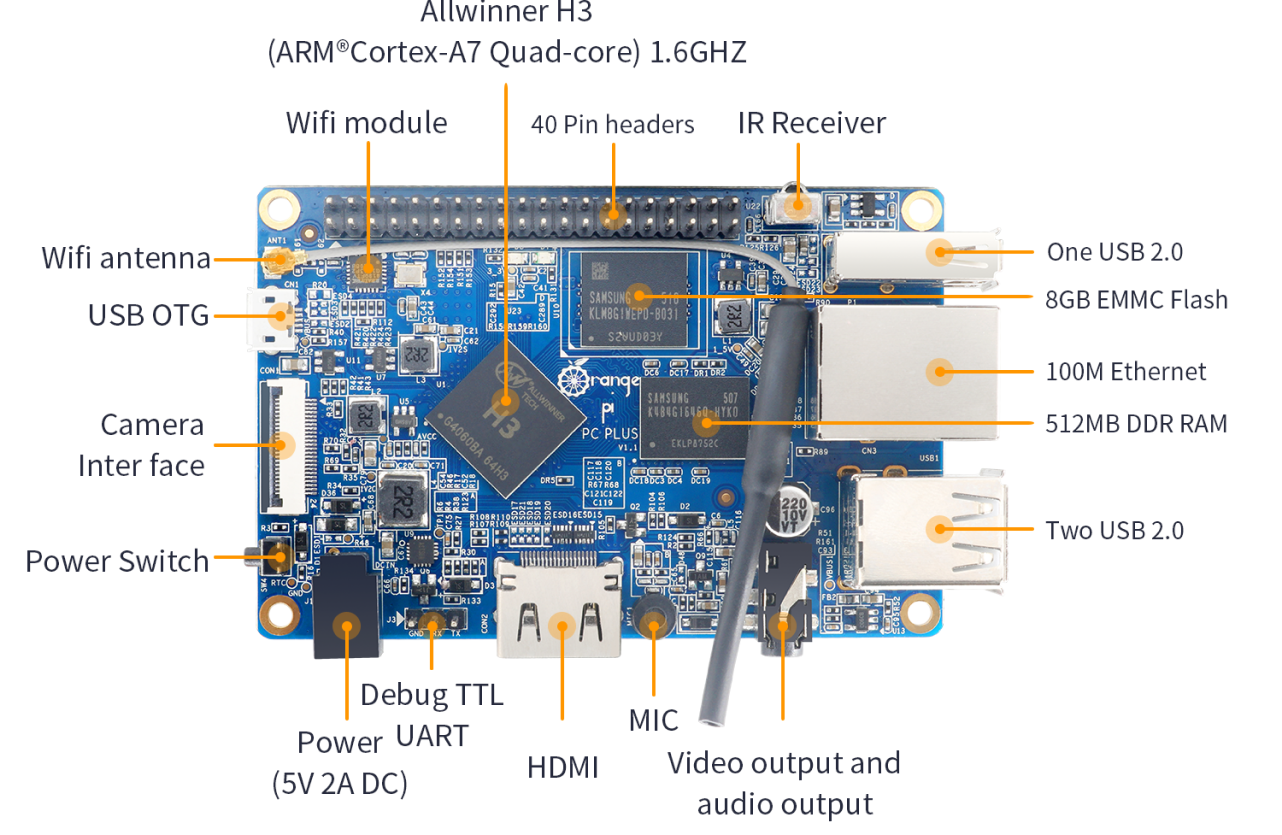 Orange Pi PC Plus — это открытая одноплатная платформа на базе процессора Allwinner H3 (Quad-Core Cortex-A7) с частотой до 1,6 ГГц.