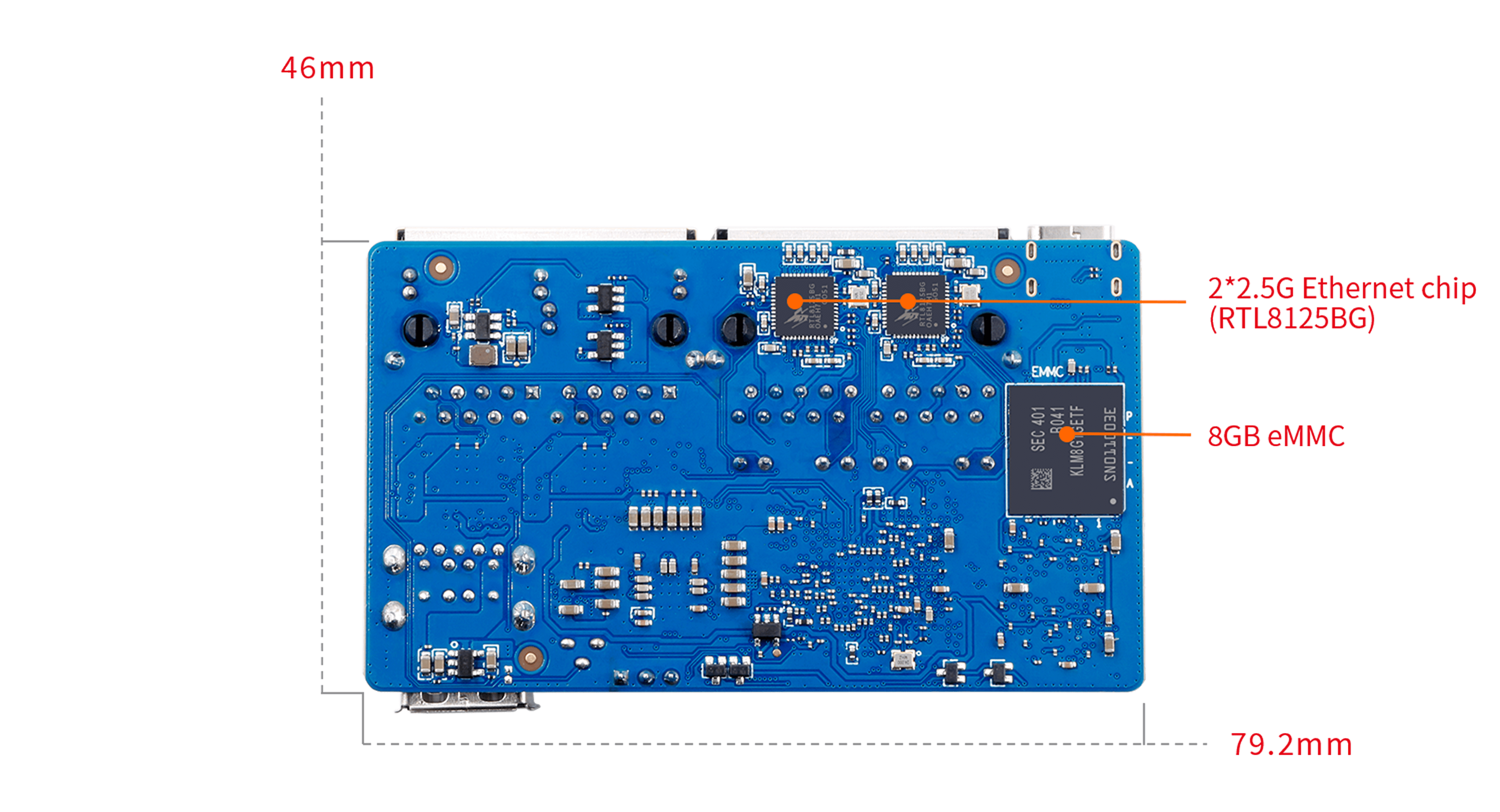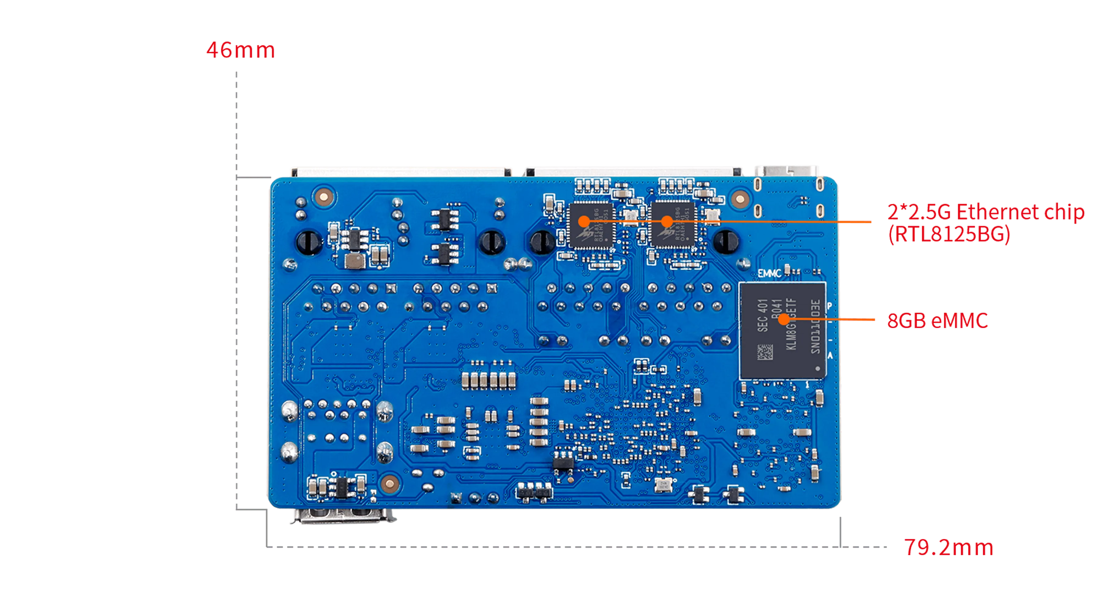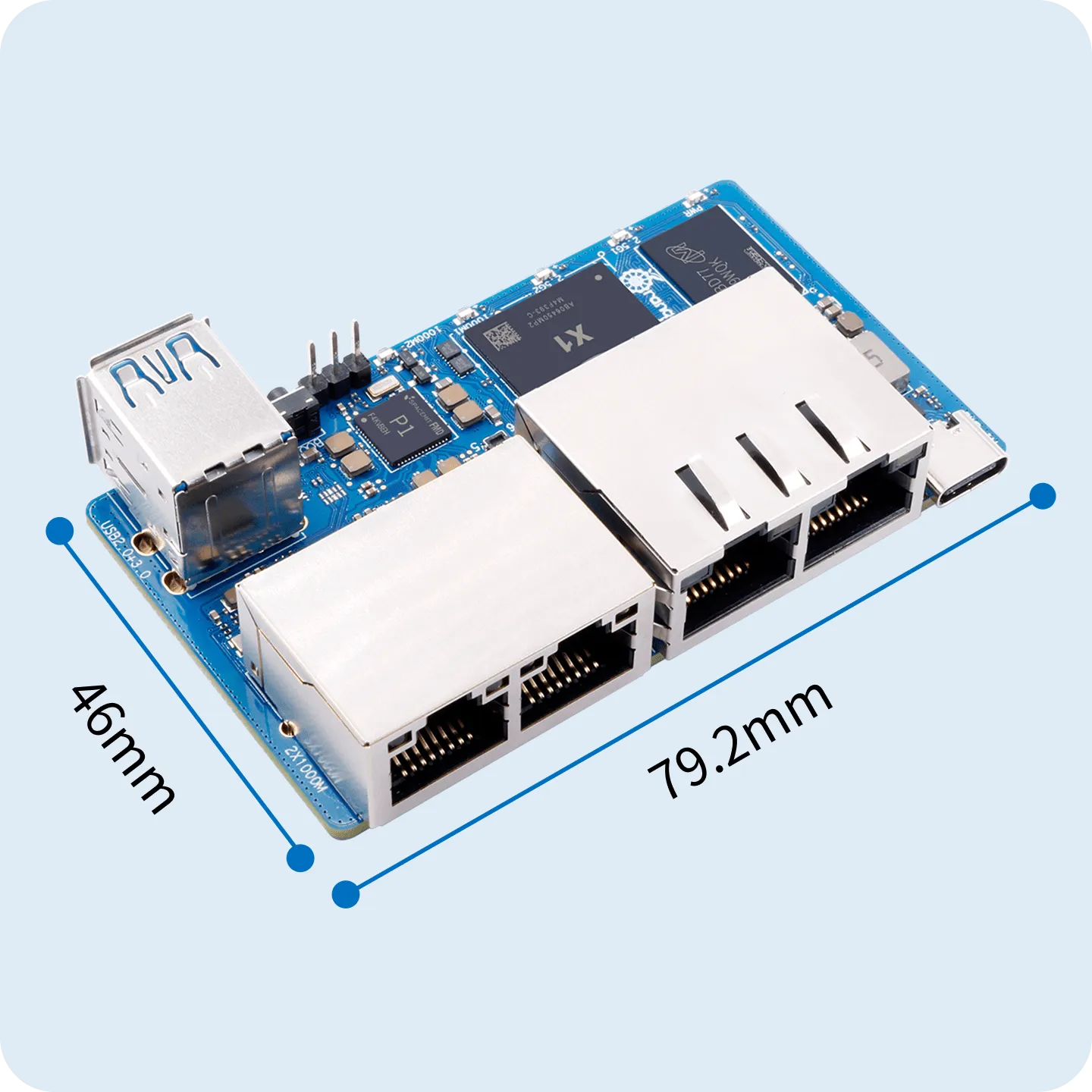 Поддерживает 2/4/8 ГБ LPDDR4X оперативной памяти и 8 ГБ eMMC встроенного накопителя. Благодаря четырём сетевым портам (2 × Gigabit Ethernet и 2 × 2.5G Ethernet), USB 2.0 / 3.0, питанию Type-C 5 В 3 А, а также слотам для TF-карты и отладки, устройство подходит для профессиональных и промышленных задач. Orange Pi R2S работает под управлением OpenWRT и Ubuntu. Особенности: — 8-ядерный RISC-V AI-процессор Ky X1 — вычислительная мощность 40 000+ DMIPS и до 2 TOPS AI-ускорения — Без отдельного NPU: CPU обеспечивает AI-обработку (2 TOPS @ INT8) с высокой точностью и энергоэффективностью — Память: варианты 2 / 4 / 8 ГБ LPDDR4X для стабильной и плавной работы — Сеть: 2 × Gigabit Ethernet + 2 × 2.5 G Ethernet для высокоскоростной передачи данных — Питание: USB Type-C 5 В 3 А — Размер: всего 79.2 × 46 × 1.6 мм — удобно встраивать в ограниченное пространство — Система: поддержка OpenWRT и Ubuntu для сетевых, промышленных и IoT-приложений Технические характеристики: — Процессор: Ky X1 (8-ядерный RISC-V AI, 2 TOPS) — Оперативная память: LPDDR4X 2 ГБ / 4 ГБ / 8 ГБ — Накопитель: eMMC 8 ГБ — Сеть: 2 × Gigabit Ethernet + 2 × 2.5 G Ethernet — USB: 1 × USB 3.0 / 1 × USB 2.0 (также используется для прошивки) — Слот TF: для карт памяти — Отладка: 3-пиновый UART (3.3 V) — Кнопки: MASKROM (восстановление / прошивка) — Индикаторы: питание × 1; Gigabit LAN × 2; 2.5G LAN × 2 — Питание: USB Type-C 5 В 3 А — Размер платы: 79.2 × 46 × 1.6 мм — Поддерживаемые ОС: OpenWRT, Ubuntu Применение: — Корпоративные и промышленные шлюзы — Edge-вычисления и автоматизация — Интеллектуальные сети и системы мониторинга — Энергоменеджмент, транспорт, умные города — NAS-системы и домашние маршрутизаторы |