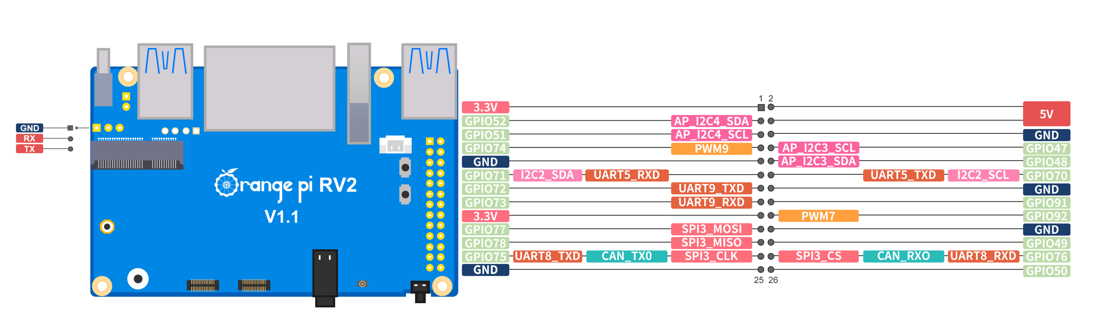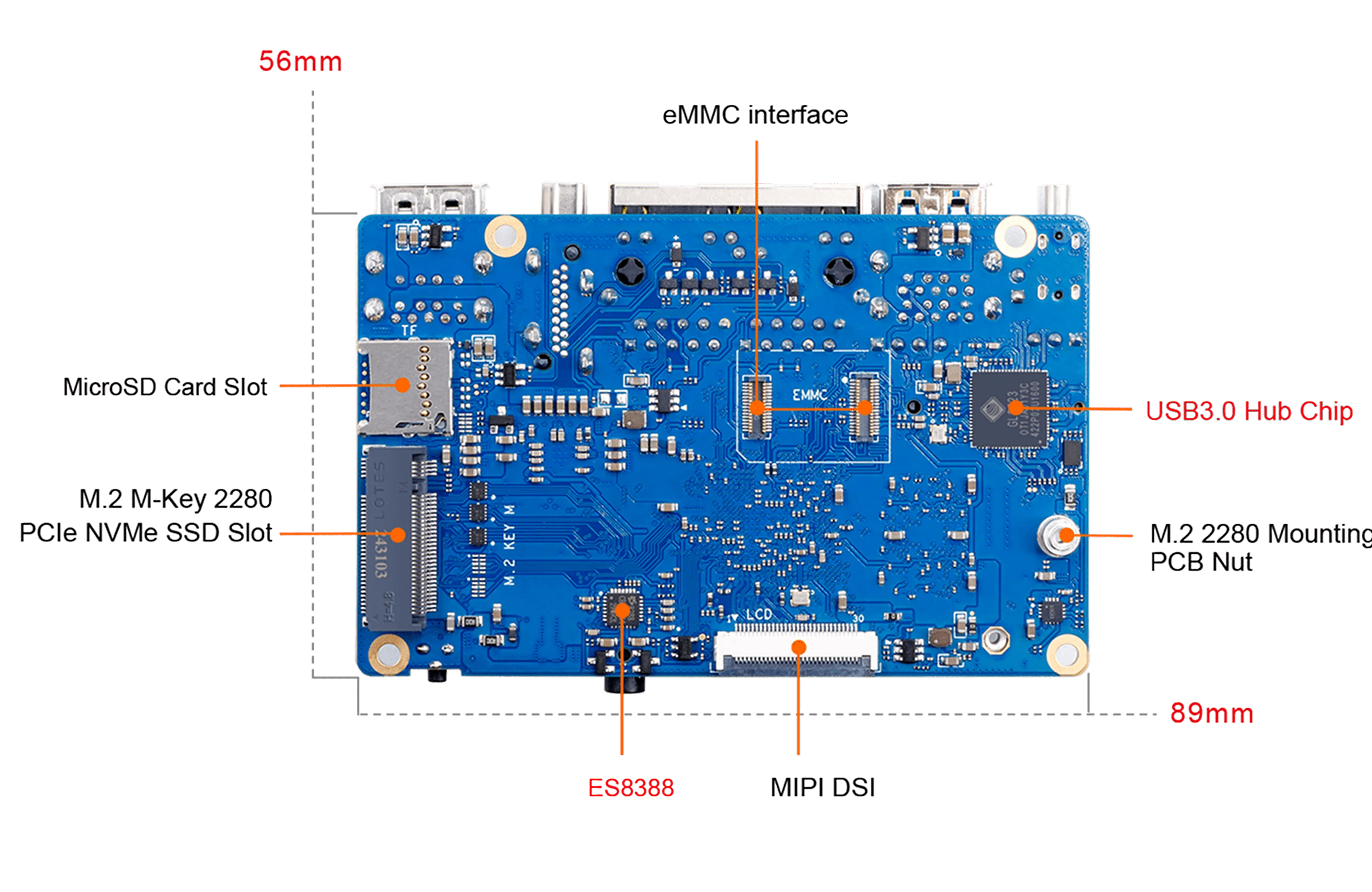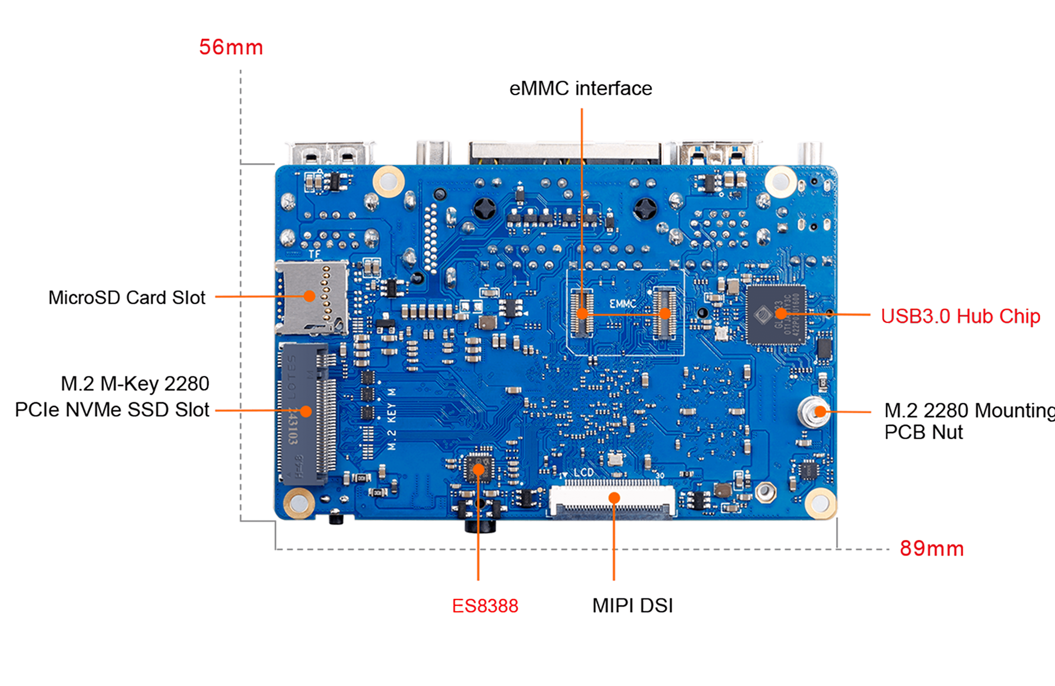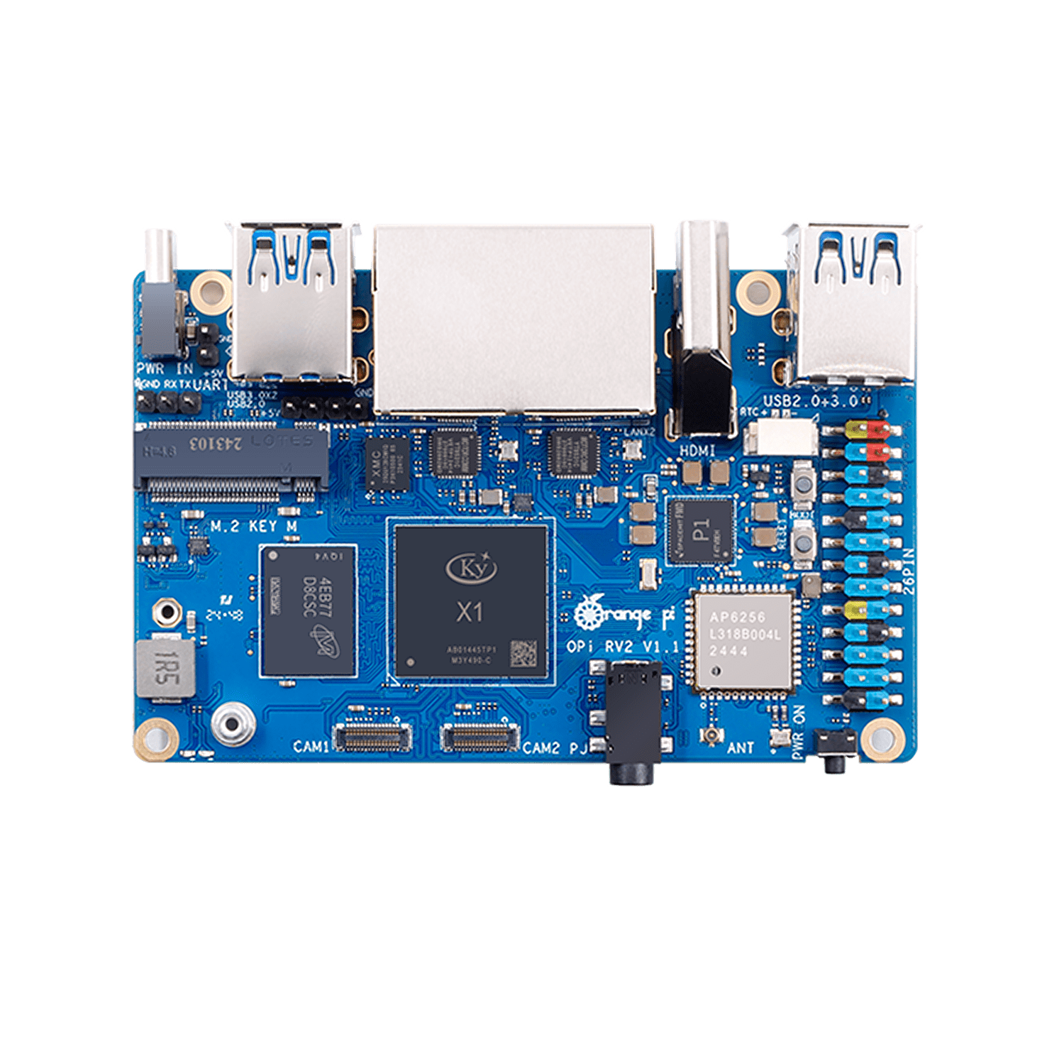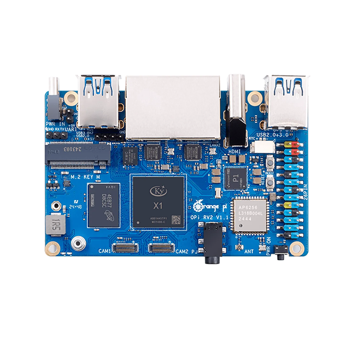 Плата обеспечивает вычислительную мощность 2 TOPS без необходимости в отдельном NPU-модуле и поддерживает быстрое развёртывание AI-моделей. Оснащена 2 / 4 / 8 ГБ оперативной памяти LPDDR4X, двумя гигабитными LAN-портами, модулями Wi-Fi 5.0 + Bluetooth 5.0 (BLE), а также двумя слотами M.2 M-Key для NVMe SSD.