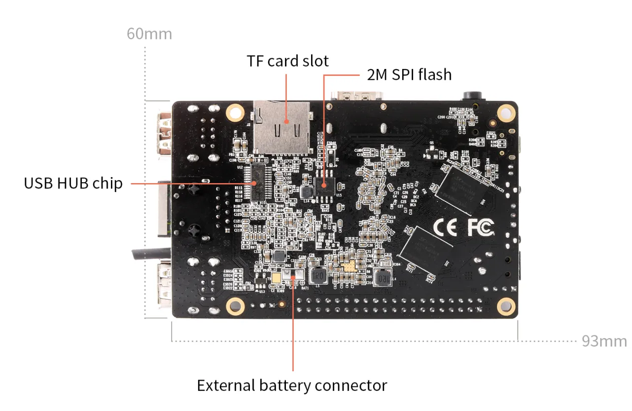 Компактная плата (93×60 мм) оснащена 2 ГБ оперативной памяти DDR3, гигабитным Ethernet-портом, модулем Wi-Fi + Bluetooth 4.2, HDMI-выходом, CSI-портом для камеры и 40-пиновым разъёмом расширения. Поддерживает Android, Ubuntu и Debian. Подходит для DIY-проектов, автоматизации, обучения и встраиваемых систем.