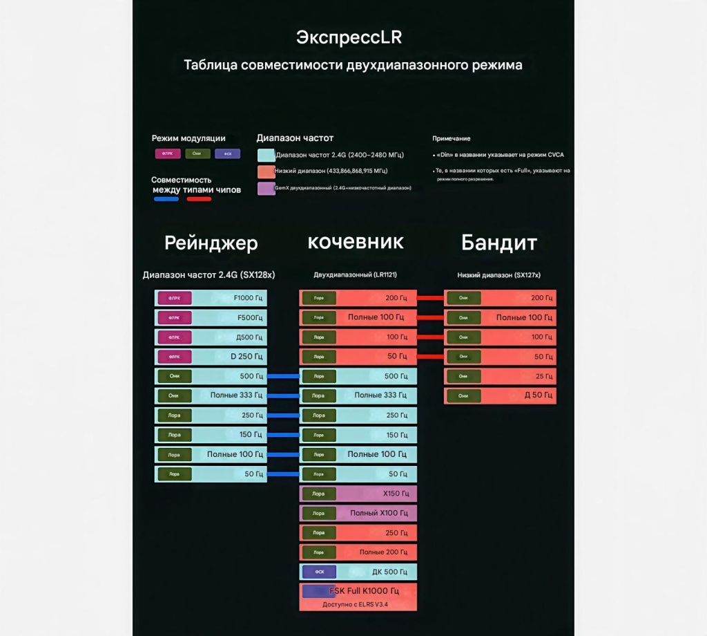 Поддерживаемые режимы ExpressLRS:
