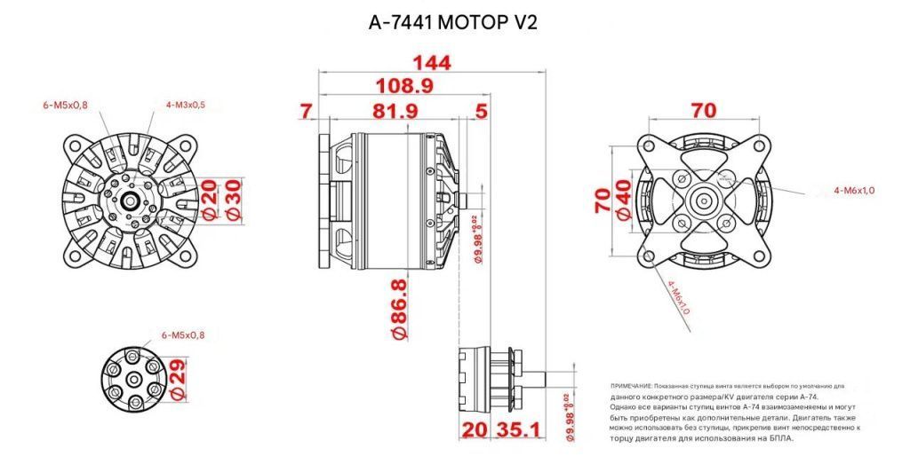 — Диаметр статора: 74 мм