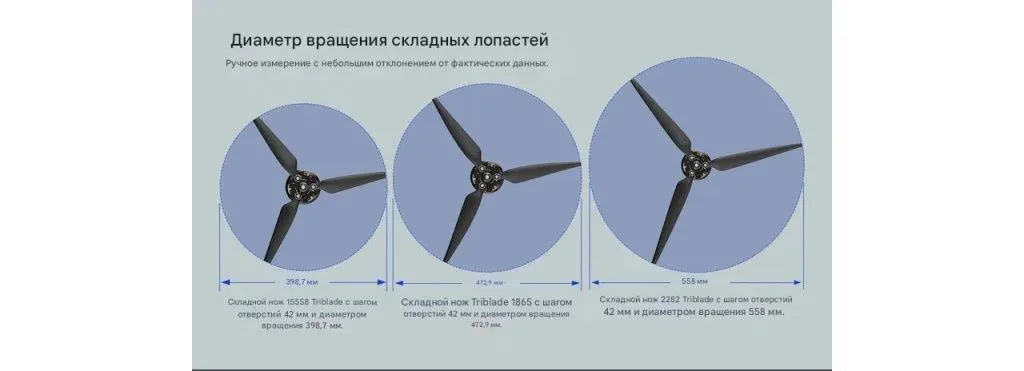 Диаметр раскрытия складных лопастей