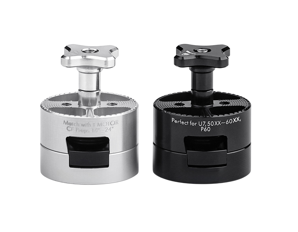 Быстросъёмный адаптер T-MOTOR Q1824: 1-секундная установка, двойная блокировка и тройная защита от вибраций. Корпус из 7075, совместимость с винтами 18–24″ и валами 4/6 мм.
