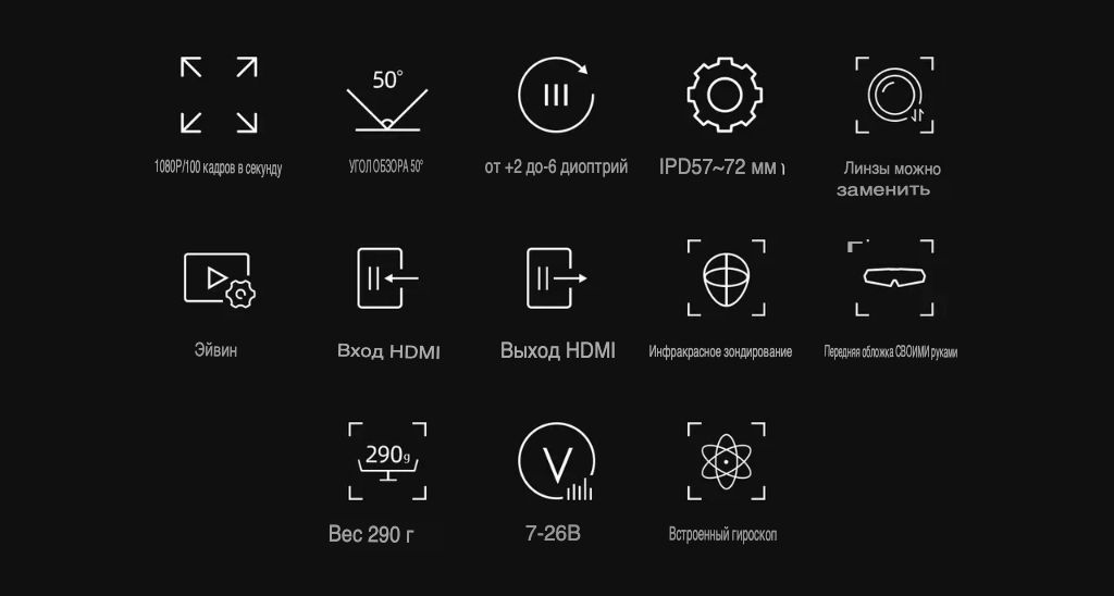— Встроенный гироскоп (Head Tracking): Позволяет управлять подвесом камеры (гимбалом) поворотами головы для максимального погружения.