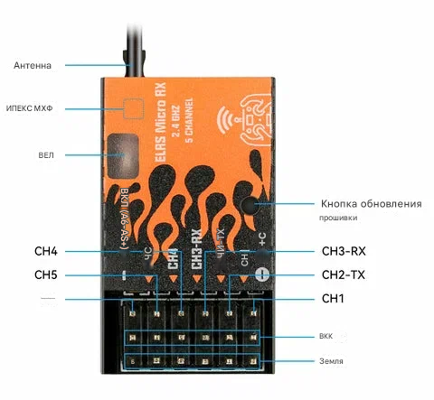 Приемник BETAFPV ELRS Micro Receiver основан на открытом проекте ExpressLRS, обеспечивающем высокую скорость, низкую задержку и большую дальность связи. Данная модель поддерживает выход PWM (широтно-импульсная модуляция) для прямого управления сервомашинками, что делает ее идеальной для самолетов, вертолетов, машин, лодок и других RC-моделей без полетного контроллера. Также поддерживает выход по протоколу CRSF для FPV-дронов. Ключевые особенности — Двойной режим вывода: PWM (5 каналов) для прямого управления сервоприводами ИЛИ CRSF для подключения к полетным контроллерам. — Функция Failsafe: Защита модели от потери управления. Настраиваемые значения для всех каналов через веб-интерфейс. — Plug-and-play дизайн: Упрощенное подключение благодаря продуманной компоновке. — Совместимость с широким спектром моделей: Мультироторы, самолеты, вертолеты, машины, лодки. — Надежный RF-чип: SX1280/SX1281 для диапазона 2.4 ГГц. — Прошивка по умолчанию: ExpressLRS V2.0.0 (поставляется с V3.3.0 с ноября 2024). Технические характеристики — Наименование: BETAFPV ELRS Micro Receiver (ELRS 2.4G V1.2). — Вес: 4.5 г (с антенной). — Антенна: U.FL + T-антенна (рекомендуется 80 мм дипольная T-антенна в комплекте). — Каналы PWM: 5 каналов. — Протокол вывода: PWM или CRSF. — Габариты: 19 x 32 x 9 мм (без антенны). — Микроконтроллер: ESP8285. — RF-чип: SX128X. — Мощность телеметрии: 17 мВт. — Диапазон частот: 2.4 ГГц ISM. — Входное напряжение: 5В ~ 9В постоянного тока (контакт «+»). — Тип совместимых моделей: Мультироторы, самолеты, вертолеты, RC-машины, лодки и др. Сравнение приемников BETAFPV ExpressLRS — SuperD RX: True Diversity, два чипа, CRSF, 100 мВт, для дронов и самолетов. — Micro RX: PWM или CRSF, 17 мВт, для самолетов, вертолетов, машин, лодок. — Nano RX: CRSF, 100 мВт, для FPV-дронов. — Lite RX: CRSF, 17 мВт, для вуп-дронов. Схема подключения и прошивка — Предоставлена схема распиновки приемника. — Текущая версия прошивки: ELRS 3.3.0 (несовместима с версиями 2.x). TX-модуль и приемник должны иметь одинаковую основную версию прошивки ELRS (3.x с 3.x, 2.x с 2.x). — Приемник также поддерживает прошивку с выводом CRSF (в этом случае CH2 соответствует TX, CH3 — RX). — Инструкция по прошивке и файлы прошивки доступны по ссылкам. Процедура привязки (Bind) Приемник поставляется с прошивкой ELRS V2.0.0/V3.3.0 без предустановленной фразы привязки. — Шаг 1: Войдите в режим привязки приемника: включите/выключите питание три раза. Светодиод выполняет двойное мигание. — Шаг 2: Активируйте режим привязки на TX-модуле или радиопередатчике. — Шаг 3: После успешной привязки светодиод горит постоянно. — Шаг 4: Данные привязки сохраняются для последующих автоматических подключений. Настройка Failsafe и PWM выхода Для настройки значений Failsafe (при потере сигнала) при использовании PWM: — Шаг 1: Включите приемник и подождите 20 секунд без привязки. Светодиод начнет быстро мигать (активирован Wi-Fi). — Шаг 2: Подключитесь к Wi-Fi сети: Имя: ExpressLRS RX, Пароль: expresslrs. — Шаг 3: Откройте в браузере адрес: http://10.0.0.1. — Шаг 4: Установите желаемые значения Failsafe для каждого канала. Значения являются абсолютными (без использования флага "invert"). Индикация статуса (LED) — Постоянный свет: Успешное подключение. — Двойное мигание: Режим привязки (Bind). — Медленное мигание: Ошибка соединения. — Быстрое мигание: Режим обновления по Wi-Fi. Комплектация — 1 x Приемник ELRS Micro Receiver. — 1 x BETAFPV 80 мм T-антенна. |