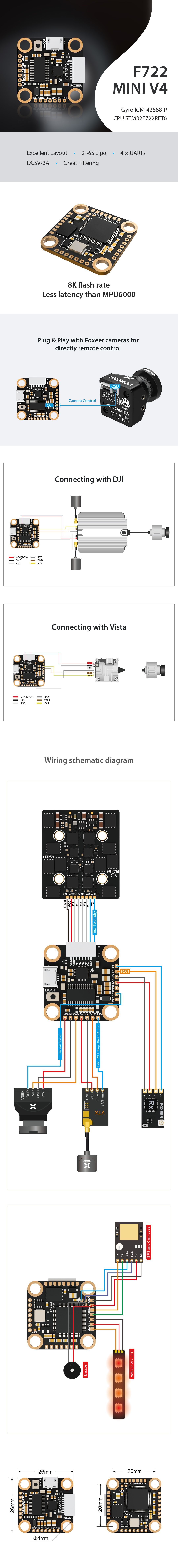 — Компактный размер: Плата 26x26 мм с креплением 20x20 мм идеально подходит для сборок на легких рамах.