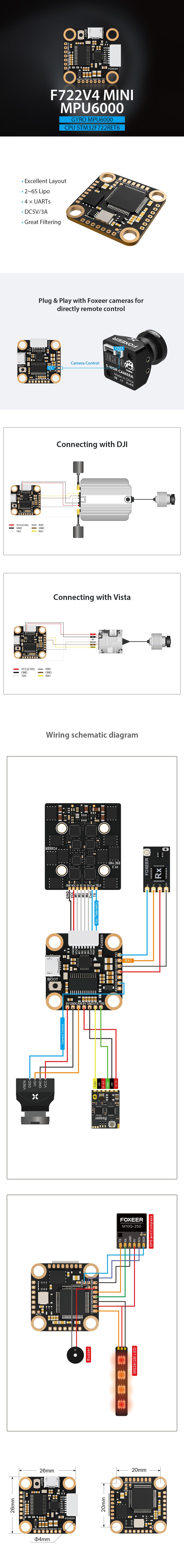 — Компактный размер: Плата 26x26 мм с креплением 20x20 мм идеально подходит для сборок на легких рамах.