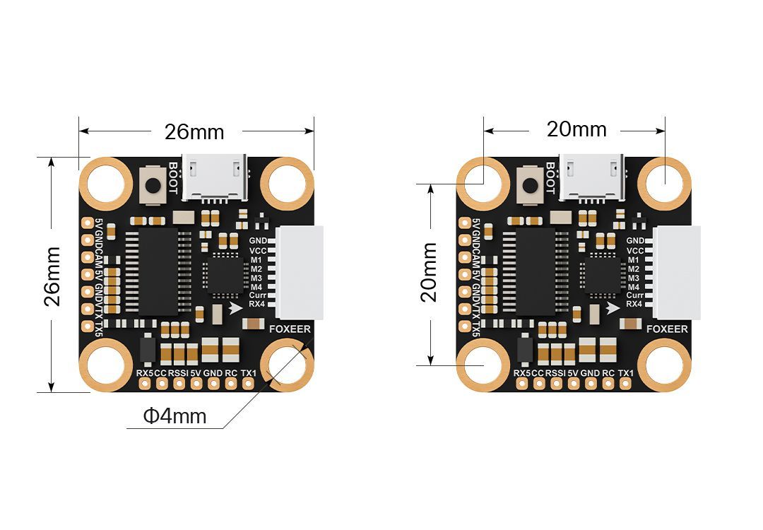 — Компактный размер: Плата 26x26 мм с креплением 20x20 мм идеально подходит для легких сборок.