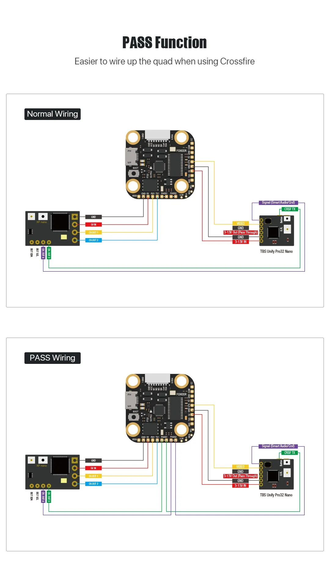 — Специализированные платформы с использованием VTX TBS Unify Pro32 Nano и аналогичных, где функция PASS позволяет минимизировать количество соединений.
