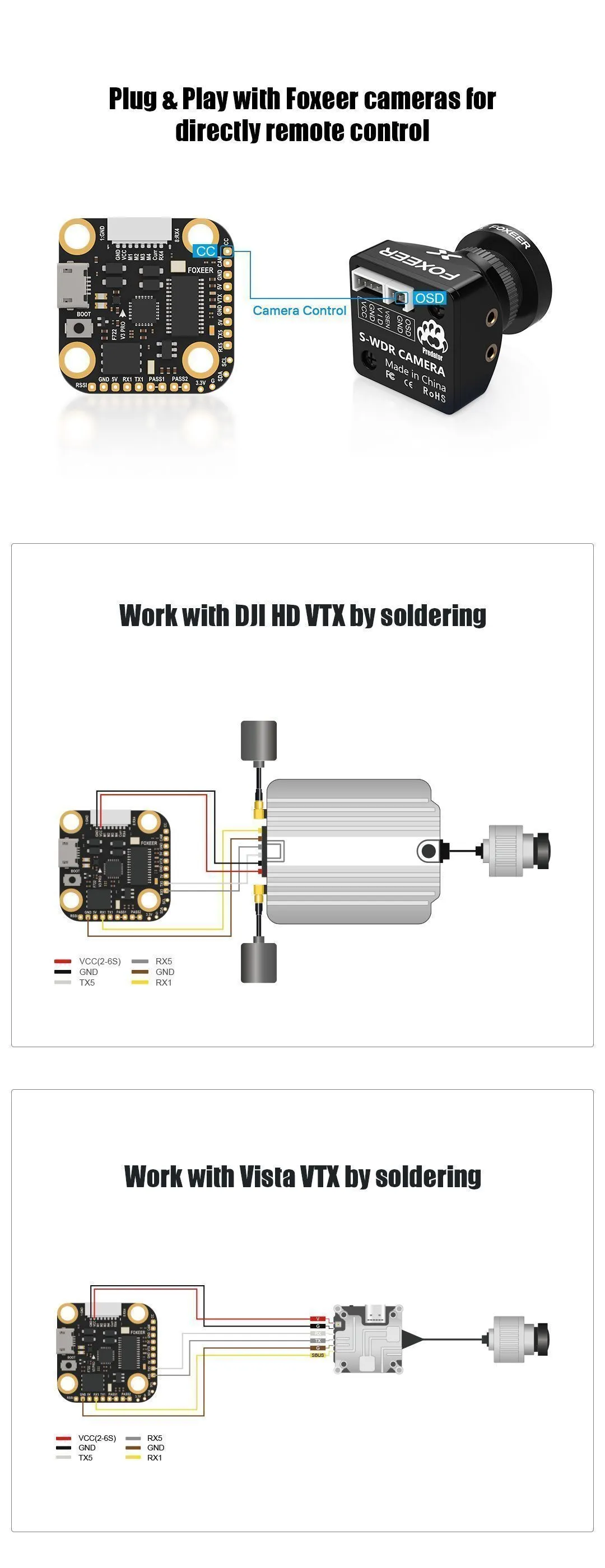 — Выделенный выход CC: Прямое управление камерами Foxeer с OSD-меню (Camera Control).