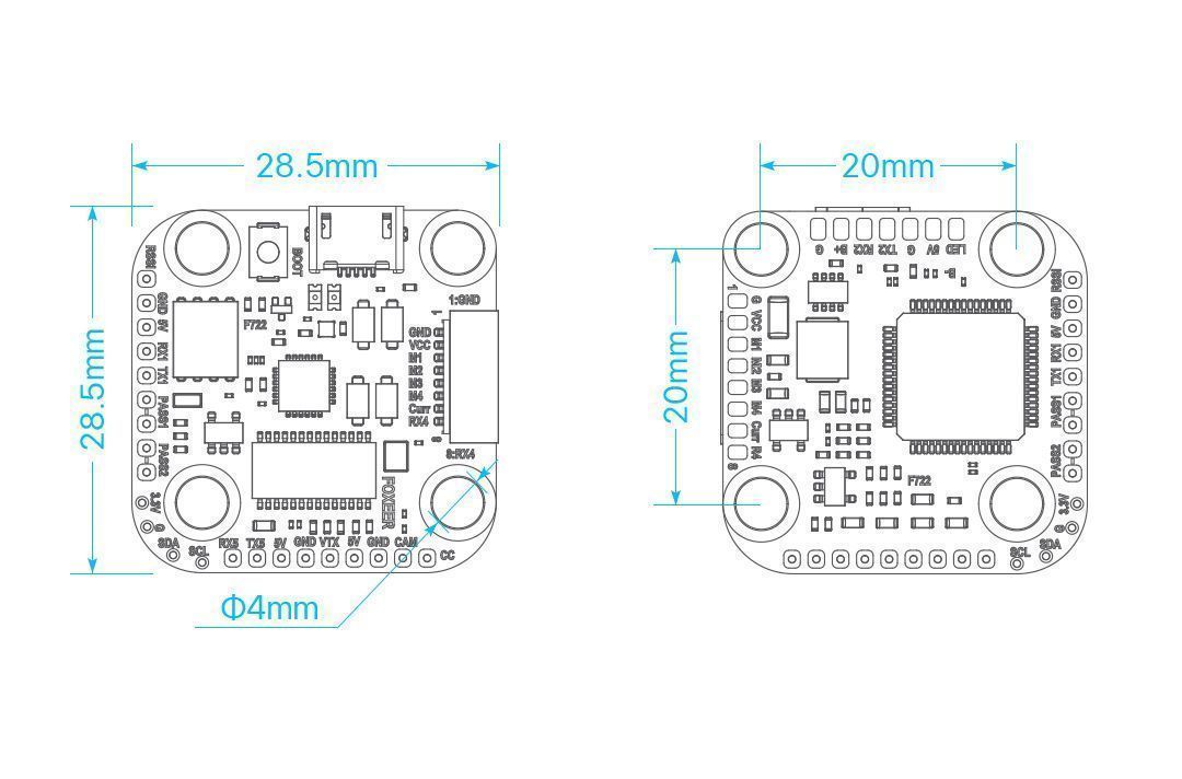 — Компактный размер с удобной разводкой: Плата 28.5x28.5 мм с креплением 20x20 мм и продуманной компоновкой для чистых сборок.