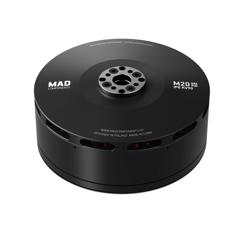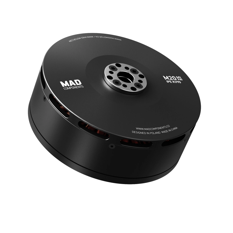 MAD M20 Mini IPE V1 — промышленный мотор высокой тяги для тяжёлых дронов и VTOL-систем Назначение Моторы серии M — флагманские решения компании MAD Components, специально разработанные для тяжёлых много-роторных платформ, электрических парапланов, крупных сельскохозяйственных VTOL и промышленных БПЛА. Они применяются в аэрофотосъёмке, картографировании, парапланеризме, опрыскивании сельхозугодий и других задачах, где требуется надёжная силовая установка профессионального уровня. Модель: MAD M20 Mini IPE V1.0 Позиционирование — Высокопроизводительный мотор, рассчитанный на нагрузку 8–9,5 кг на один ротор; — Оптимален для промышленных БПЛА с большой тягой и крупными пропеллерами; — Поддерживает 12S батареи и рассчитан на карбоновые пропеллеры 28–40 дюймов; — Компактная и лёгкая конструкция с высокой прочностью. Ключевые характеристики — Пиковая тяга: до 30,4 кгf; — Номинальная тяга: 8–9,5 кгf; — Масса мотора: 812 г; — Номинальное напряжение: 12S LiPo (48 В); — Энергоэффективность: >79 %; — Класс защиты: IP35; — Увеличенный запас по температуре: до 220 °C (обмотки) и 180 °C (магниты). Применение — Много-роторные тяжёлые дроны (грузовые, съёмочные, инспекционные); — Профессиональные UAV с динамическими изменениями нагрузки; — Парапланы и VTOL с крупным винтом и высоким моментом; — Сельскохозяйственные платформы с долгим временем полёта. Конструктивные особенности — Модель: MAD M20 Mini IPE V1.0 — Количество пар полюсов: 21 — Размер: Ø 108.6 × 45.9 мм — Диаметр вала: Ø 15 мм — Длина кабеля: 150 мм (эмалированный провод) — Центробежное охлаждение: есть — Балансировка ротора: ≤ 10 мг — Балансировка мотора: ≤ 20 мг — Отверстия под пропеллер: Ø 20 мм (M3×4), Ø 24 мм (M4×4) — Отверстия под крепление мотора: Ø 50 мм (M4×4) — Подшипники: 6902ZZ × 2 (EZO) — Испытание на пробой: 500 В Электрические параметры — KV-рейтинг: 90–160 KV — Ток холостого хода: 2.5–5.7 A (при 20–30 В) — Внутреннее сопротивление: 10–34 мΩ — Максимальный ток: до 162 А — Максимальная мощность: до 7.7 кВт — Максимальный крутящий момент: до 14.9 Н·м — Максимальная тяга: до 30.4 кгf — Рабочая температура: до 130 °C — Масса мотора: 812 г — Масса в упаковке: ≈ 1.18 кг Совместимые пропеллеры и регуляторы — Пропеллеры: 28×8.4, 34×11.2, 36×11.5, 40×13.1 (карбоновые); — Рекомендуемые ESC: — MAD AMPX 120A / 200A (5–14S); — Совместимые аккумуляторы: 12S LiPo (48 В). Рабочие зоны и эксплуатация — Нерабочая зона: ток выше 139–163 А; — Кратковременная зона (10–30 с): 40–160 А; — Долговременная зона: ток до 40 А; — Рекомендовано контролировать температуру и длительность работы в зависимости от условий охлаждения. Комплектация — Пластина крепления пропеллера × 1; — Направляющий штифт × 1; — Коннекторы 4 мм × 3; — Термоусадочные трубки × 3; — Винты M4×12 мм × 4; — Винты M3×16 мм × 4; — Наклейки × 2. Примерная полезная нагрузка (при 12S) — Квадрокоптер — до 32 кг; — Гексакоптер — до 48 кг; — Октокоптер — до 64 кг; — Нагрузка на 1 мотор — 8–9.5 кг. Преимущества серии M20 Mini IPE V1 — Профессиональный уровень производительности и качества сборки; — Высокая энергоэффективность и низкие вибрации; — Стабильная работа при высоких нагрузках и температуре; — Минимальный вес при высокой тяге; — Универсальная совместимость с ESC и пропеллерами крупного диаметра. |