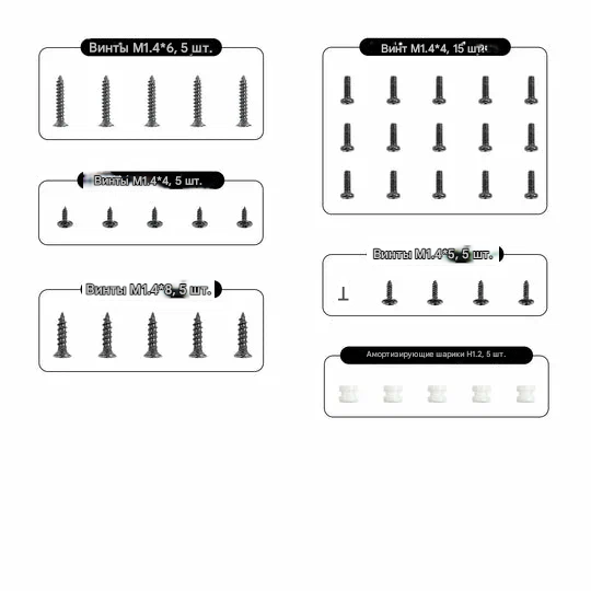BETAFPV Aquila16 Screw Pack — это оригинальный комплект крепежа, разработанный специально для дрона Aquila16. Набор включает винты для крепления моторов, разъёма BT2.0, нижней пластины рамы, козырька, камеры и полётного контроллера, а также демпфирующие шарики для виброизоляции FC. Все компоненты точно соответствуют заводским спецификациям Aquila16.