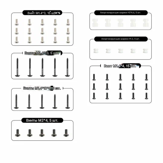 BETAFPV Meteor65 Pro O4 / Meteor75 Pro O4 Screw Pack — это оригинальный комплект крепежа, разработанный специально для дронов Meteor65 Pro O4 и Meteor75 Pro O4 с установленной цифровой системой DJI O4 Air Unit. Набор включает винты для крепления моторов, камеры DJI O4, козырька (canopy), а также демпфирующие шарики для виброизоляции O4 Air Unit и полётного контроллера. Все компоненты точно соответствуют заводским спецификациям. Общие характеристики — Тип: Комплект крепежа и демпфирующих элементов — Модель: Meteor65 Pro O4 / Meteor75 Pro O4 Screw Pack — Назначение: Замена крепежа, обслуживание и ремонт дронов Meteor65 Pro O4 и Meteor75 Pro O4 — Ключевое преимущество: Специализированный набор для O4-версий дронов, оригинальные компоненты — Совместимость: Meteor65 Pro O4, Meteor75 Pro O4 Состав комплекта — M1.4×4 Phillips Flat Head Screws — 15 шт. — Назначение: Крепление моторов на Meteor75 Pro O4 — M1.4×3 Phillips Flat Head Screws — 15 шт. — Назначение: Крепление моторов на Meteor65 Pro O4 — M2×4 Flat Head Socket Cap Screws — 5 шт. — Назначение: Крепление камеры DJI O4 — M1.4×10×4 Phillips Flat Washer Head Tapping Screws — 5 шт. — Назначение: Крепление козырька (canopy) — M1.4×13 Phillips Flat Washer Head Tapping Screws — 5 шт. — Назначение: Крепление козырька (canopy) — H2×6.6 Transparent White Shock-absorbing Balls — 5 шт. — Назначение: Демпфирующие шарики для виброизоляции DJI O4 Air Unit — H1.2 Transparent White Shock-absorbing Balls — 5 шт. — Назначение: Демпфирующие шарики для виброизоляции полётного контроллера Область применения — Замена штатного крепежа на дронах Meteor65 Pro O4 и Meteor75 Pro O4. — Ремонт и обслуживание цифровых версий Meteor Pro с DJI O4 Air Unit. — Замена изношенных или повреждённых демпфирующих шариков. Комплектация поставки — Набор крепежа Meteor65 Pro O4 / Meteor75 Pro O4 Screw Pack — 1 комплект. Варианты исполнения (доступные опции) — Данный комплект предназначен исключительно для O4-версий дронов Meteor65 Pro и Meteor75 Pro. — Для стандартных версий Meteor65 Pro / Meteor75 Pro используйте Air65 / Air75 / Meteor65 Pro / Meteor75 Pro / Cetus Pro Screw Pack. |