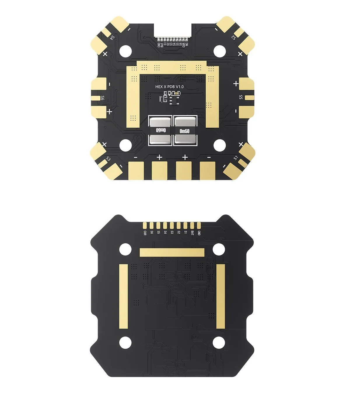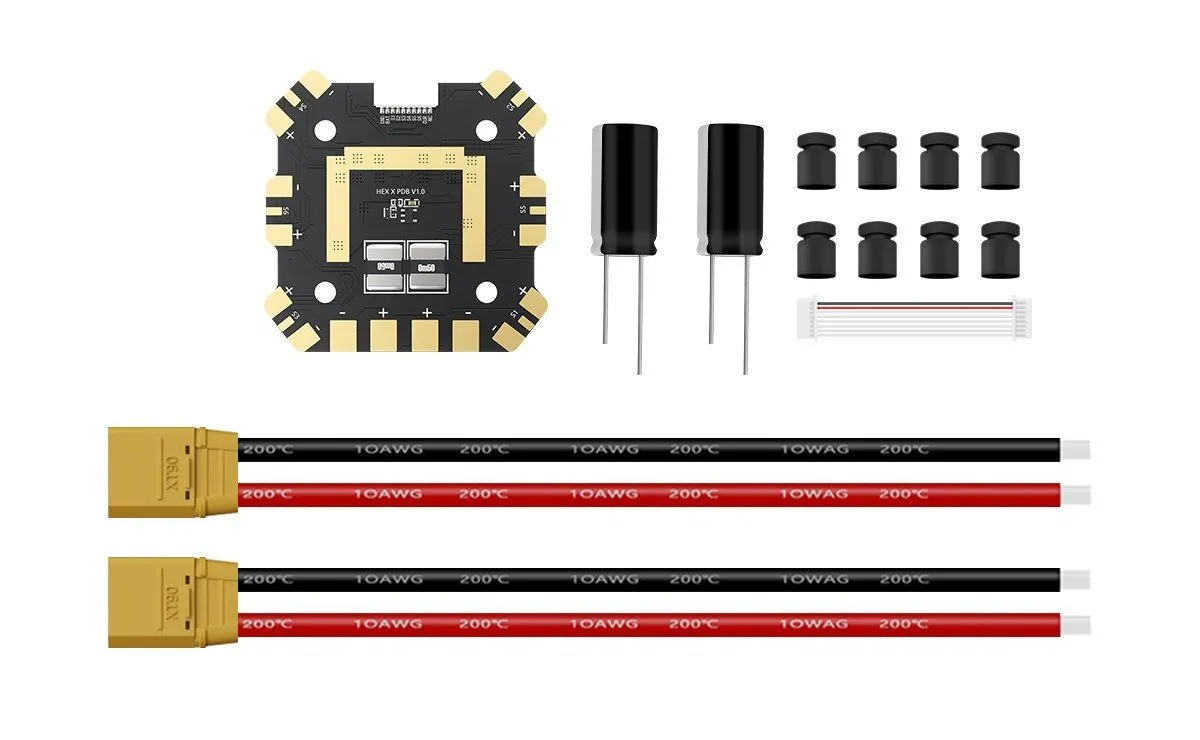 Плата распределения питания (PDB) GEPRC для гексакоптера представляет собой высоконагруженное решение для распределения питания на мультироторных системах с 6 моторами. Плата поддерживает входное напряжение 3–8S LiPo, обеспечивает непрерывный ток до 60A на канал (360A суммарно) и пиковый ток до 80A на канал (480A суммарно). Оснащена встроенным токовым датчиком для мониторинга потребления в OSD. В комплект входят два конденсатора 50V 2200µF для сглаживания пульсаций, разъемы XT90+ с проводами 10 AWG, кабель для подключения к полетному контроллеру и виброгасящие демпферы. Плата имеет стандартное крепление 30×30 мм и вес 11.8 г. Общие характеристики — Тип: Плата распределения питания (PDB) для гексакоптера — Модель: GEPRC PDB Hexacopter Power Distribution Board — Бренд: GEPRC — Входное напряжение: 3–8S LiPo — Непрерывный ток: 60A на канал / 360A суммарно (на 6 каналов) — Пиковый ток: 80A на канал / 480A суммарно (на 6 каналов) — Токовый датчик: встроенный — Габариты: 53 × 53 мм — Крепежное расстояние: 30 × 30 мм — Вес: 11.8 г Ключевые особенности — Высокая токовая нагрузка: 60A непрерывного и 80A пикового тока на каждый из 6 каналов позволяет использовать плату с мощными моторами на тяжелых гексакоптерах, включая грузовые и промышленные дроны. — Встроенный токовый датчик: Позволяет отслеживать суммарное потребление тока и остаток батареи прямо в OSD, что критически важно для контроля времени полета. — Поддержка 3–8S LiPo: Широкий диапазон входного напряжения обеспечивает гибкость при выборе батарей — от 3S до 8S. — Качественные компоненты в комплекте: Два конденсатора 50V 2200µF для сглаживания пульсаций питания, разъемы XT90+ с проводами 10 AWG для надежного подключения батареи, кабель для подключения к полетному контроллеру. — Виброгасящие демпферы: 8 силиконовых демпферов M3×8 в комплекте снижают передачу вибраций на полетный контроллер. — Компактный размер: Плата 53×53 мм с креплением 30×30 мм легко интегрируется в большинство рам гексакоптеров. — Стандартное подключение к FC: Входящий в комплект кабель SH1.0-10P to 8P EP-106 позволяет быстро подключить плату к полетному контроллеру. Технические характеристики — Модель: GEPRC PDB Hexacopter Power Distribution Board — Входное напряжение: 3–8S LiPo — Токовый датчик (Current Meter): встроенный — Непрерывный ток: 60A на канал / 360A суммарно (6 каналов) — Пиковый ток: 80A на канал / 480A суммарно (6 каналов) — Габариты: 53 × 53 мм — Крепежное расстояние: 30 × 30 мм — Вес: 11.8 г Область применения — Тяжелые гексакоптеры: Плата предназначена для использования на гексакоптерах (6 моторов) с высокими токовыми нагрузками, включая грузовые, промышленные и профессиональные дроны. — Дальнобойные полеты (Long Range): Высокая надежность и поддержка 8S обеспечивают стабильную работу на больших дистанциях. — Профессиональная аэросъемка: Используется в тяжелых кинематографических гексакоптерах, требующих высокой мощности и надежности. — Промышленные БПЛА: Применяется в беспилотных системах для мониторинга, инспекции и доставки грузов. — БПЛА двойного назначения: Может применяться в тяжелых тактических и служебных беспилотных системах. Важные примечания — Плата предназначена для использования с гексакоптерами (6 моторов) — убедитесь, что количество моторов соответствует конструкции. — Входящие в комплект конденсаторы 50V 2200µF необходимо установить для снижения пульсаций питания, особенно при использовании длинных силовых проводов.