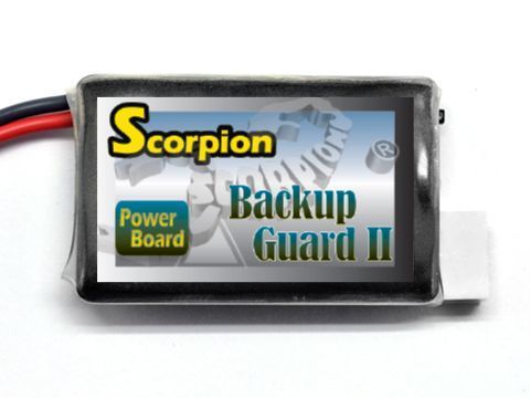В 2012 году компания Scorpion выпустила первую версию устройства Backup Guard, предназначенного для спасения авиамоделей при потере питания от ESC/BEC.