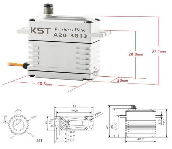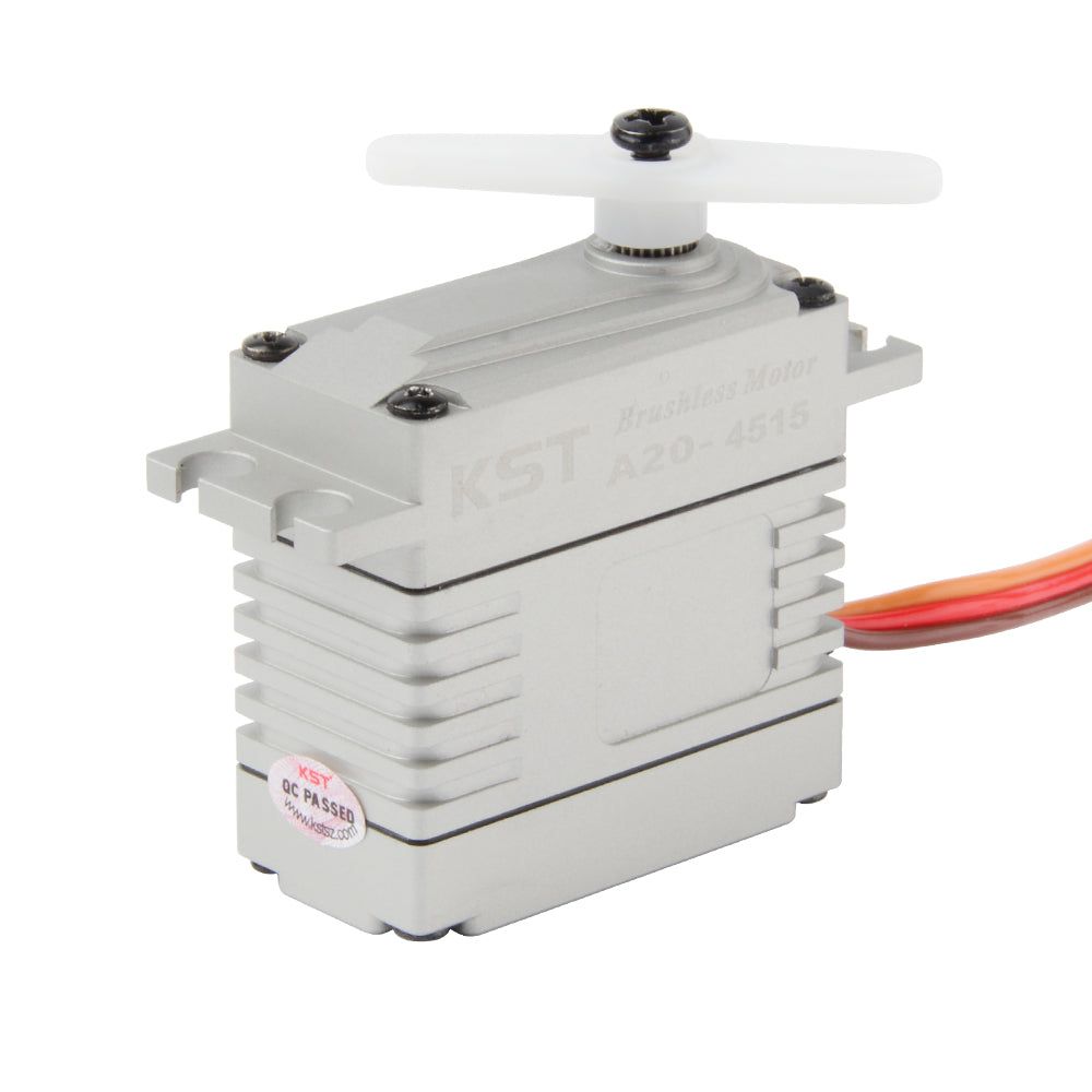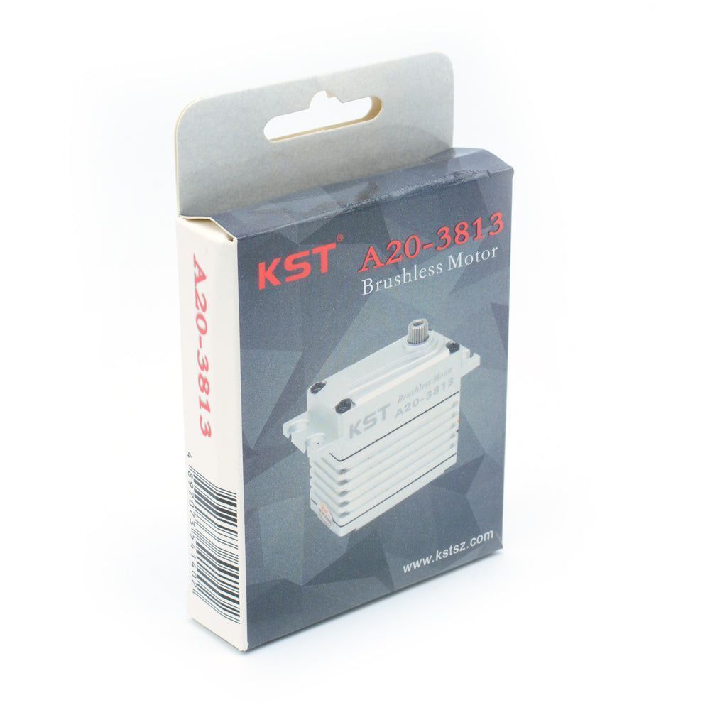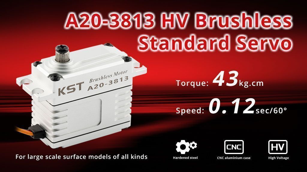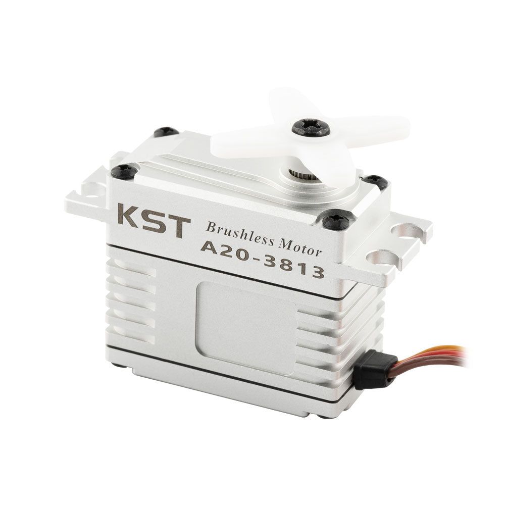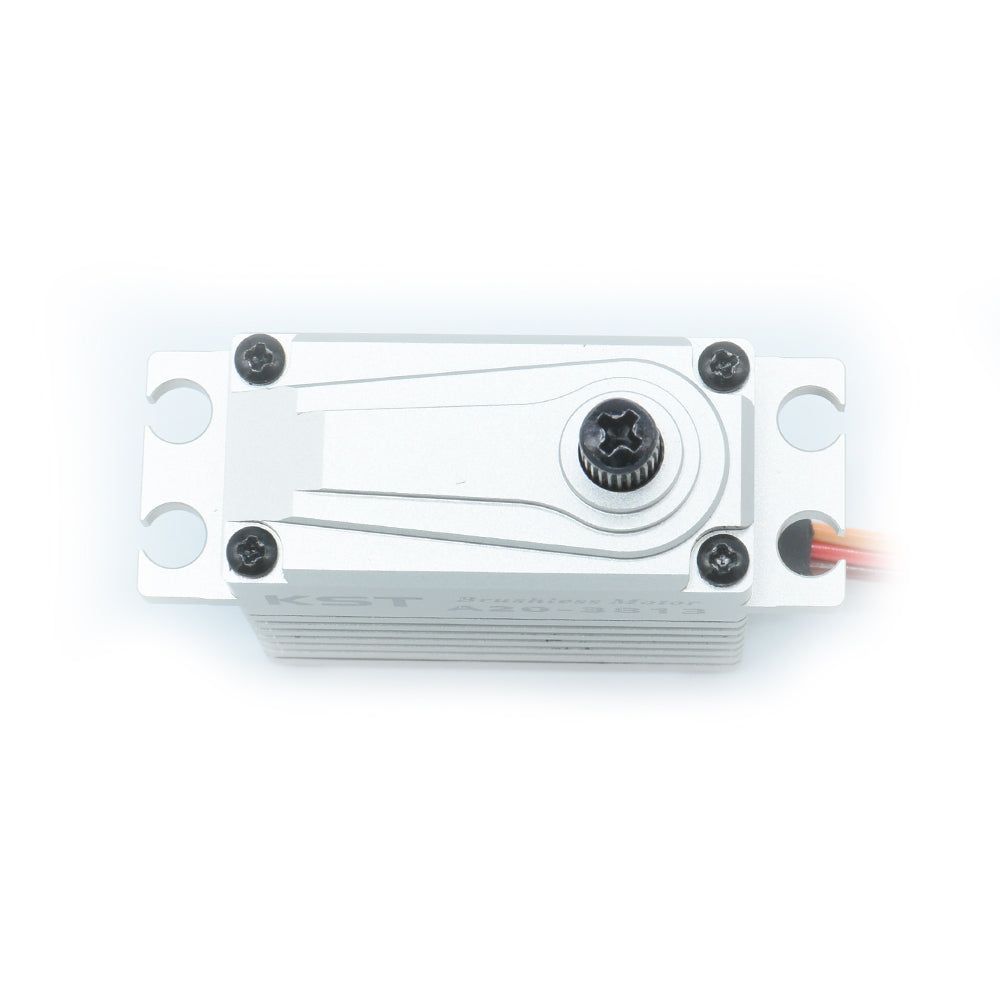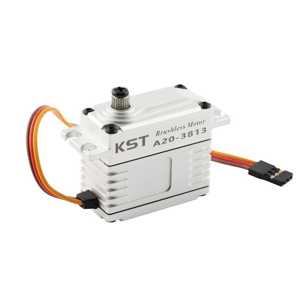 KST A20-3813 V8 — бесщёточный цифровой HV-серво, идеально подходящий для крупномасштабных моделей всех типов. Мощный и быстрый двигатель может выдерживать нагрузку до 43 кгс·см. Высококачественный цельноалюминиевый корпус обеспечивает точный монтаж и надёжный отвод тепла.