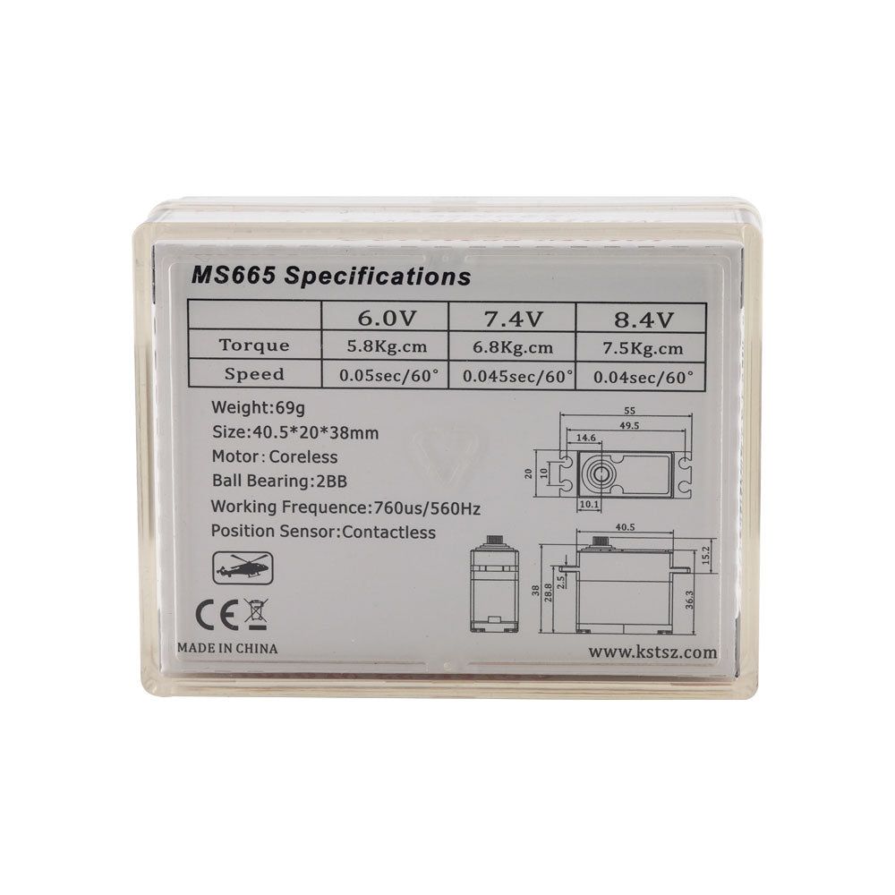 Цифровой серво MS665 с магнитной системой позиционирования, стальной передачей без люфтов и высокой точностью. Оптимален для вертолётов 550–600 класса.