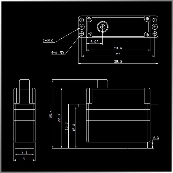 Скорость работы (7.4V): 0.07 сек/60°
