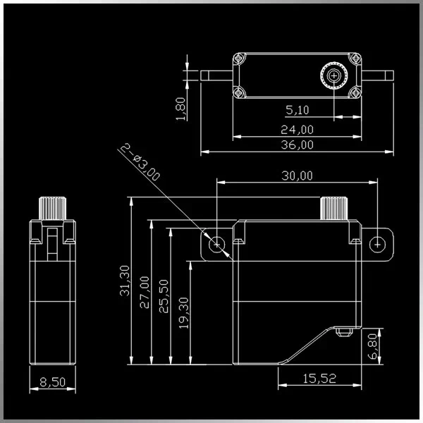 — Номинальный момент (7,4 В): 2,0 кг·см (27,78 oz/in)