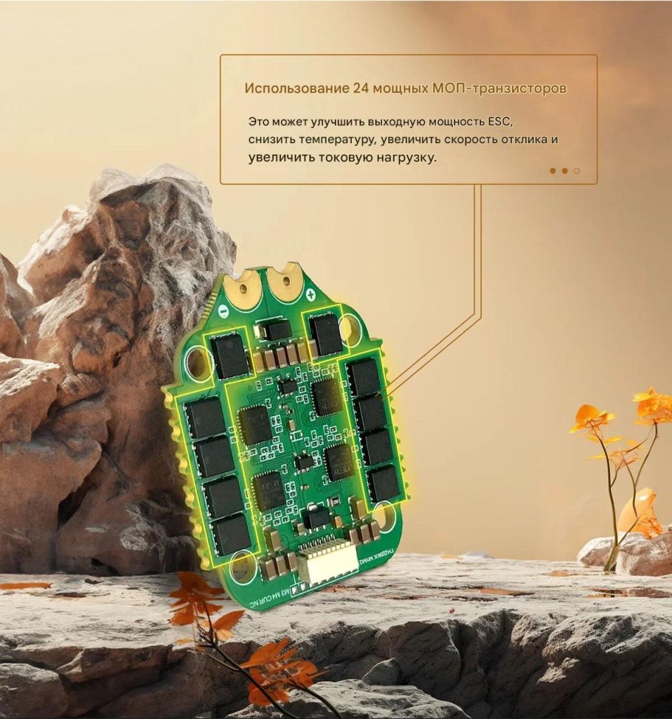 Подходит для FPV-дронов среднего и тяжёлого класса, обеспечивая стабильное питание, защиту моторов и высокую отзывчивость в полёте.