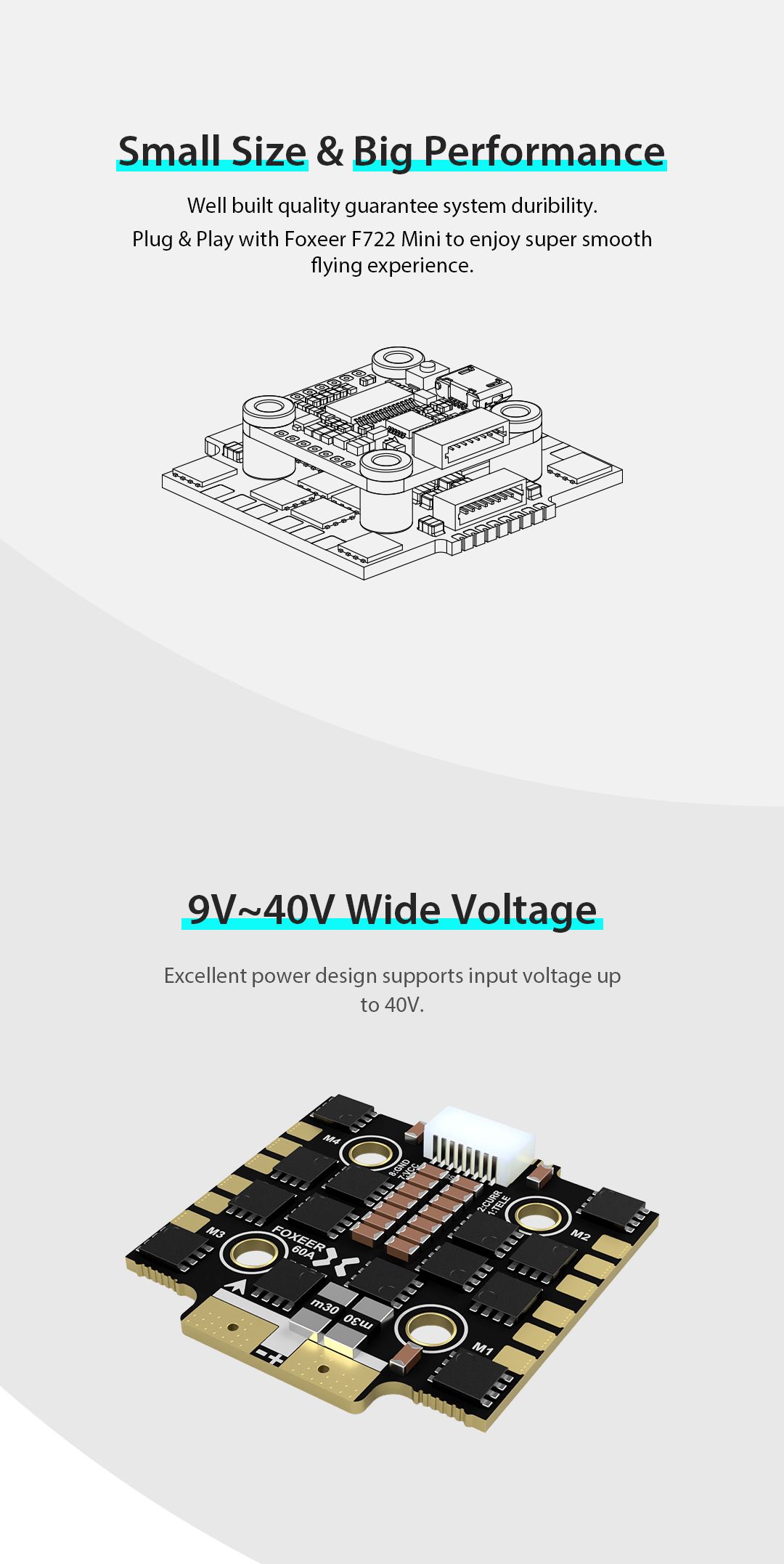 — Совместимость со стеком: Разработан для совместной работы с полетными контроллерами Foxeer формата Mini (например, F722 Mini), обеспечивая идеальную плавность полета.