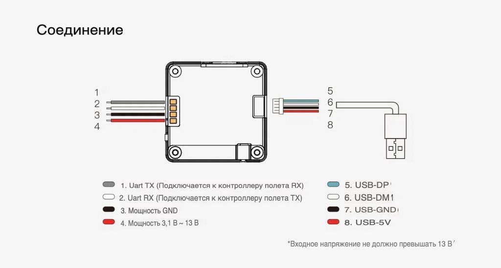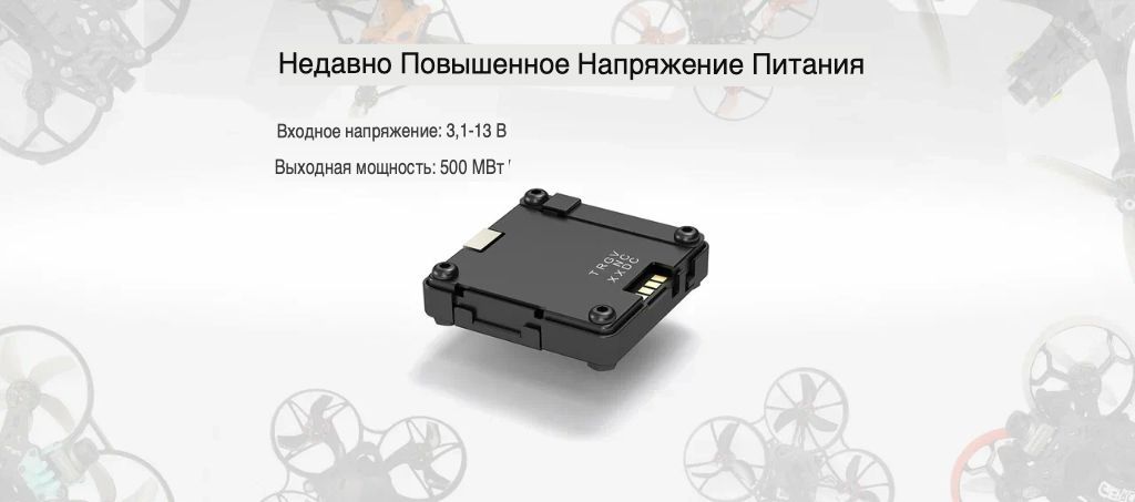 — Широкий диапазон питания (3.1–13 В): Совместим с 1S, 2S и 3S аккумуляторами.