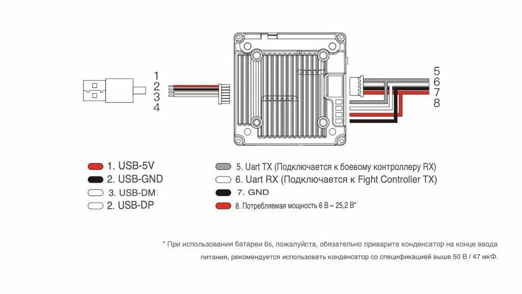 — Поддерживаемые FC системы: Betaflight, INAV, Fettec, ArduPilot, KISS
