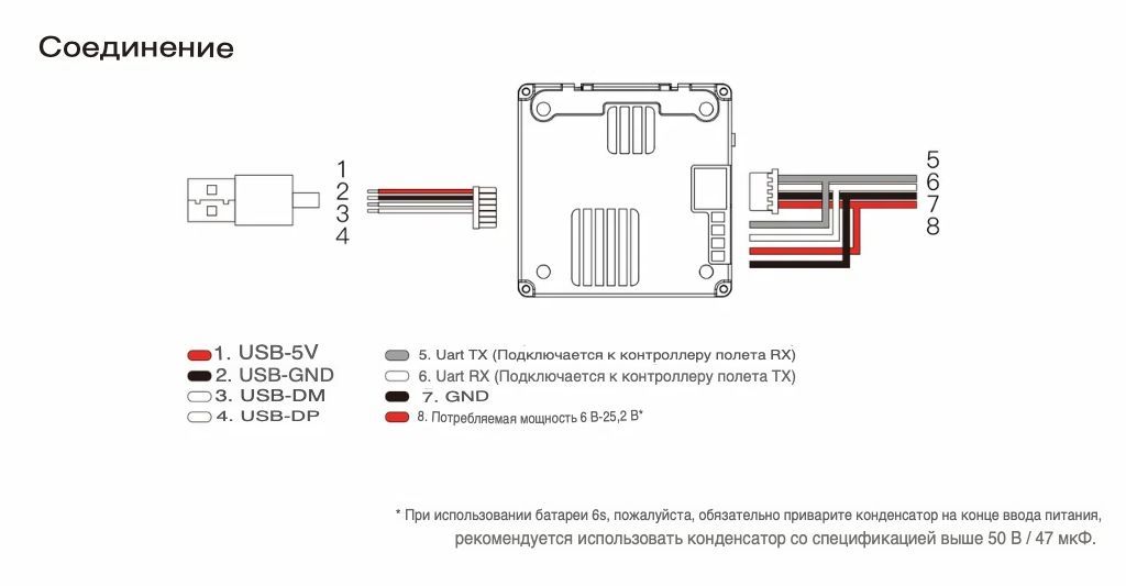 — Улучшенная защита (TVS) и питание до 6S: Широкий диапазон напряжений (6–25.2 В) и повышенная устойчивость к GPS-помехам.